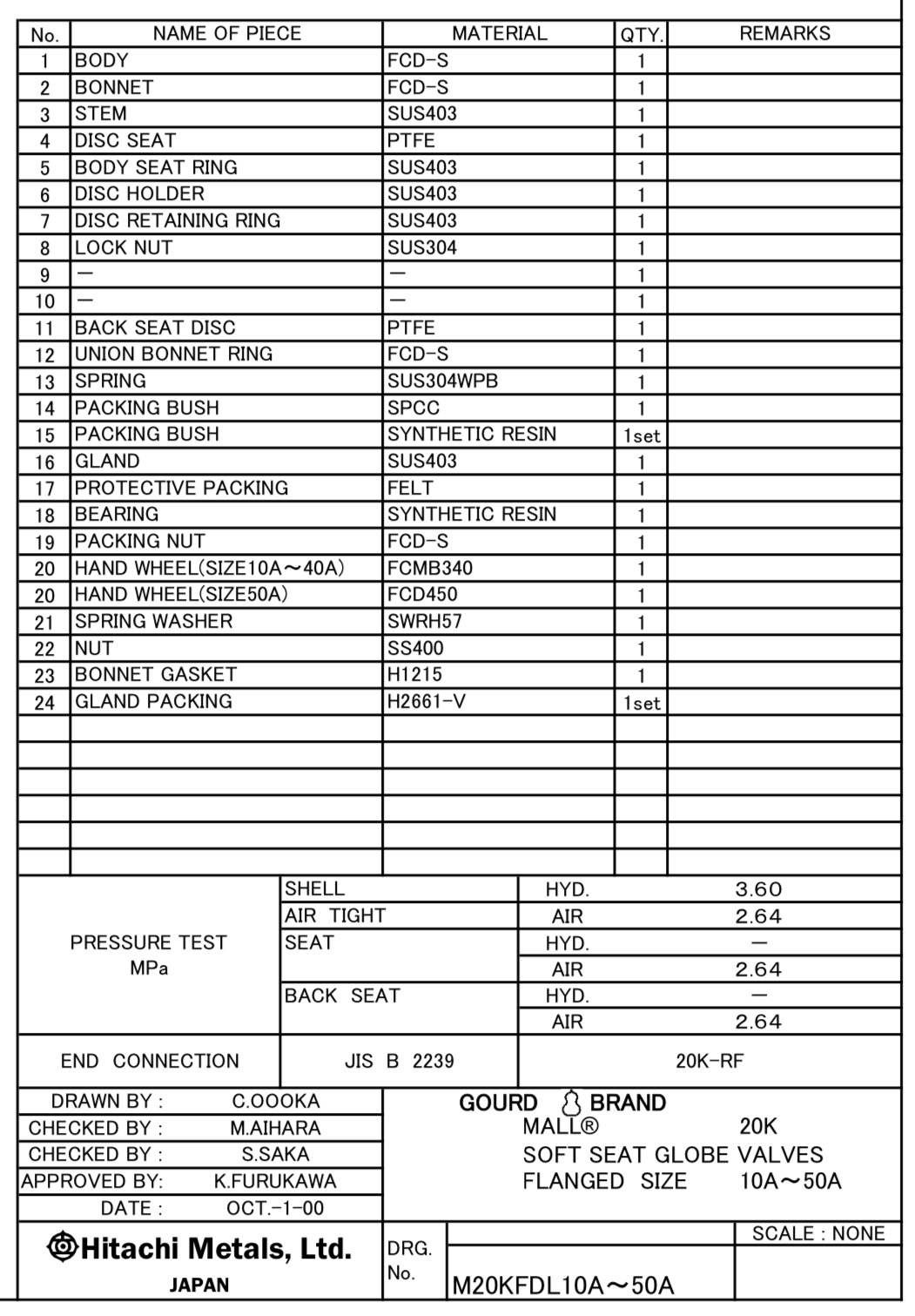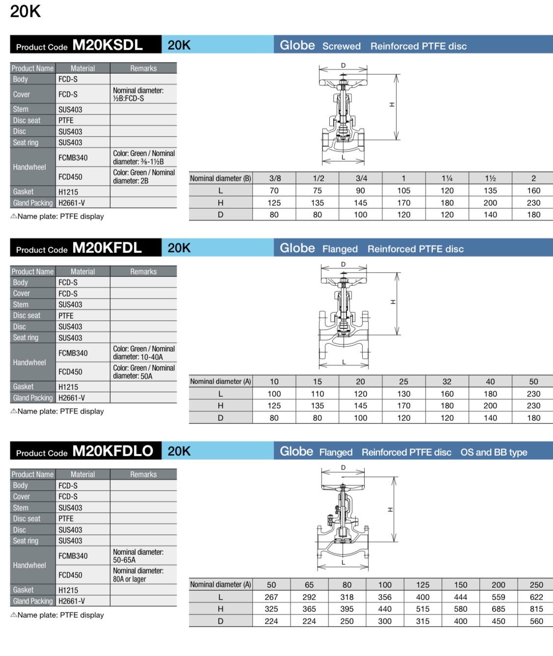 HITACHI GLOBE VALVE M20KFDL ,Type PTFE DISC