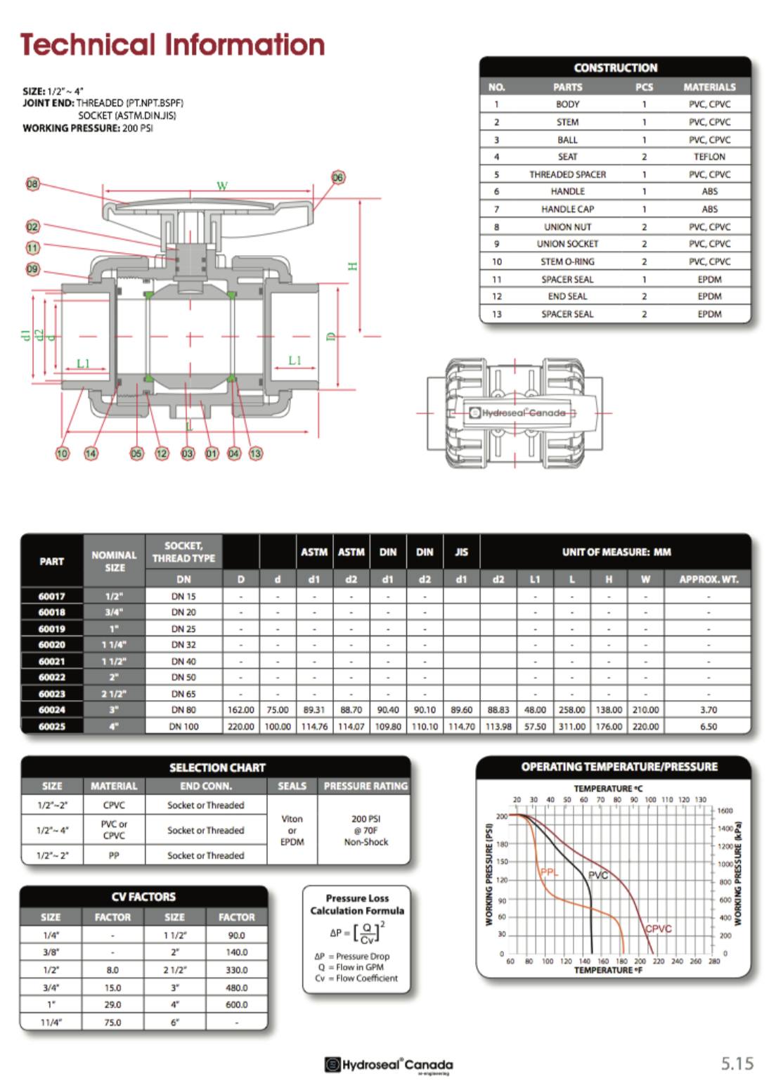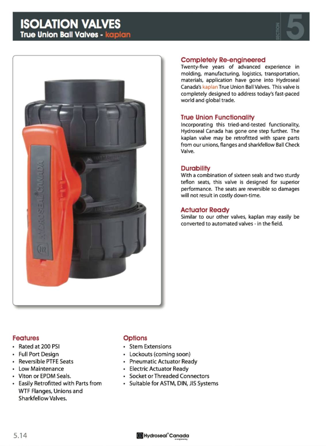 "HYDROSEAL - kaplan" PVC True Union Ball Valve