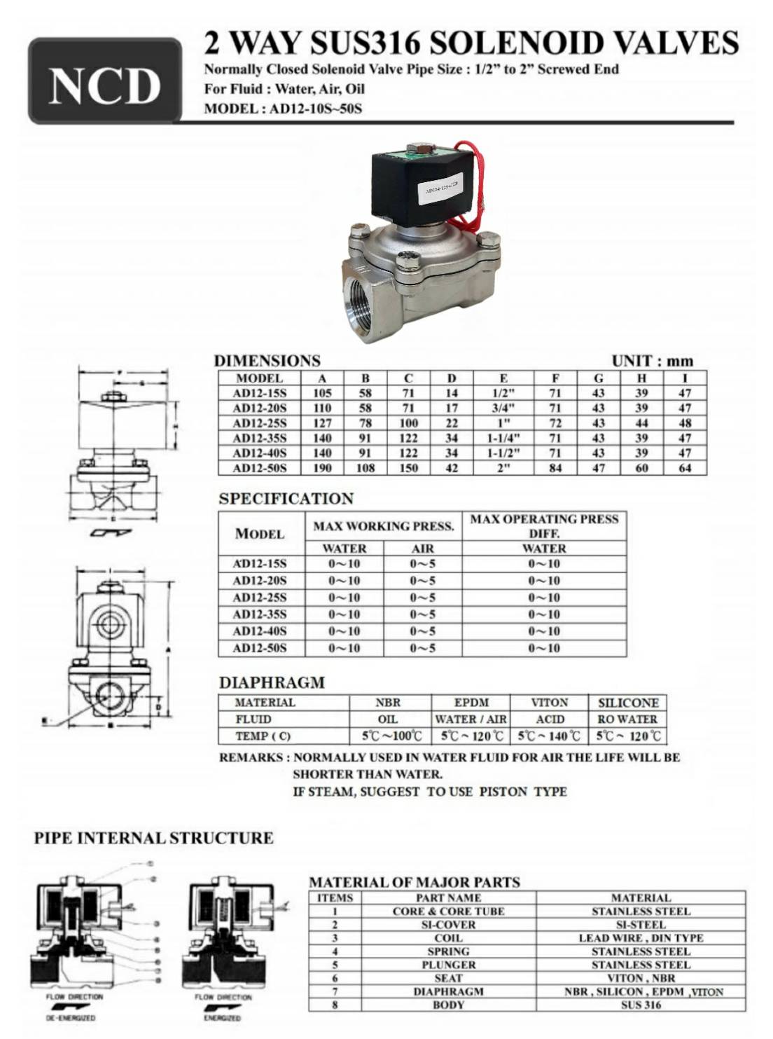 "NCD" 2-WAY SOLENOID VALVE SUS316