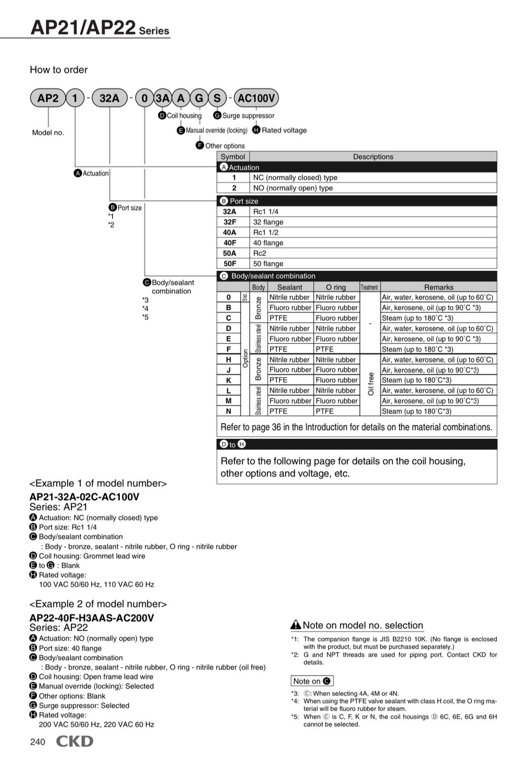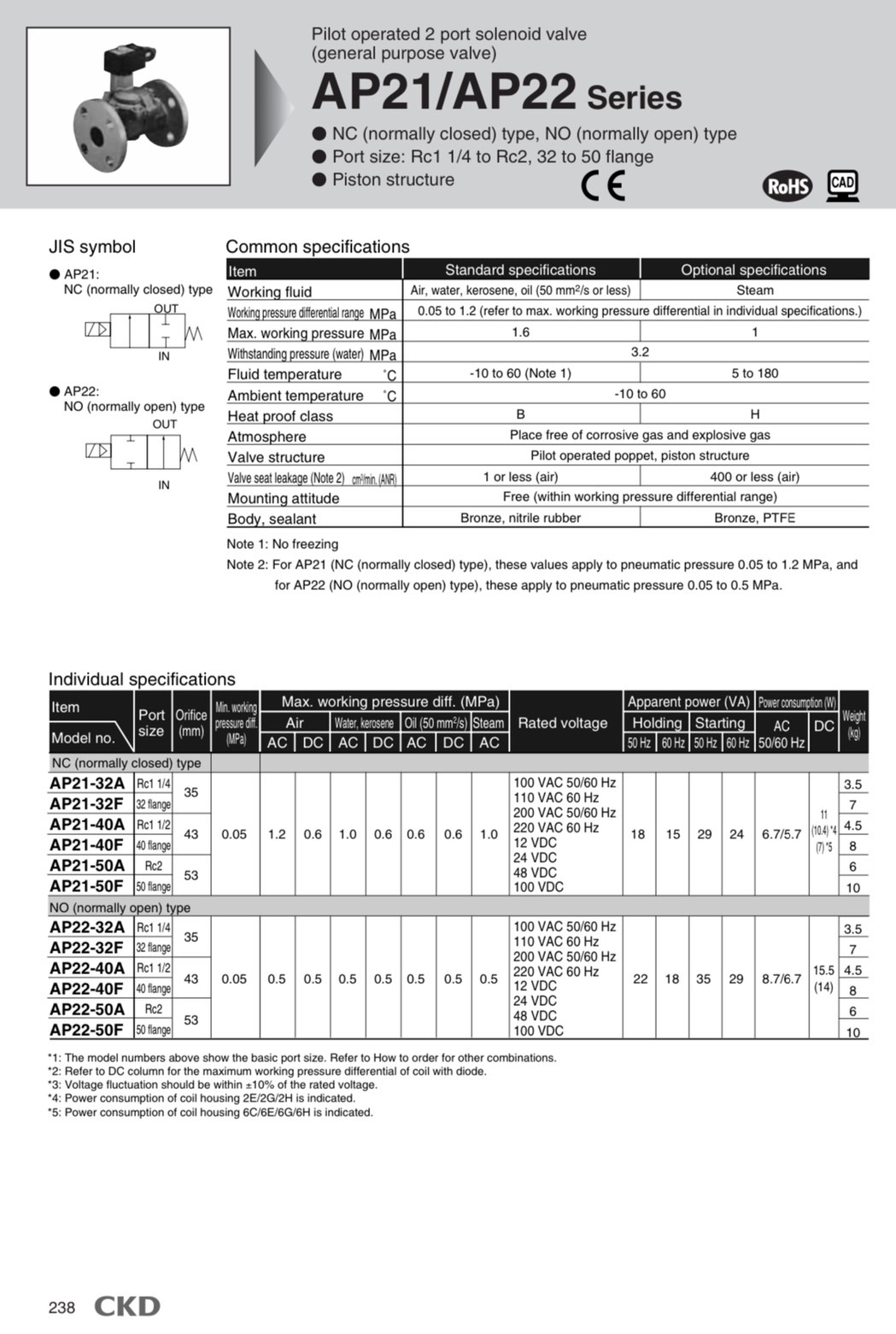 "CKD" Pilot operated Solenoid Valve AP21 Series