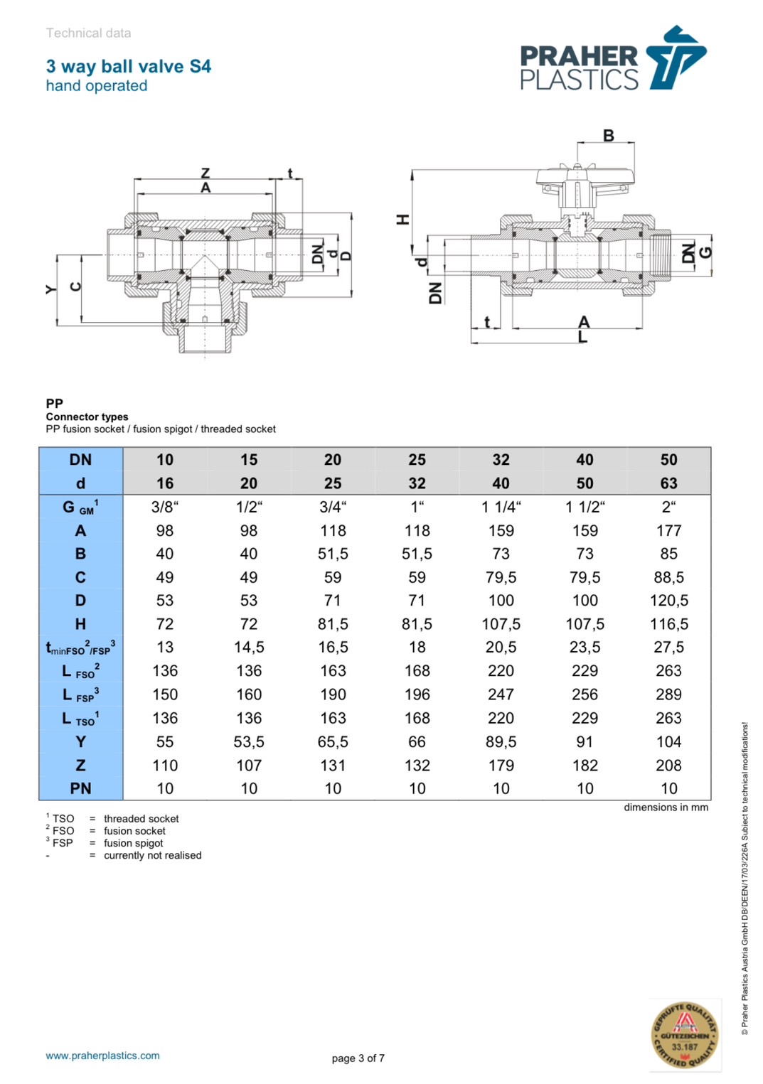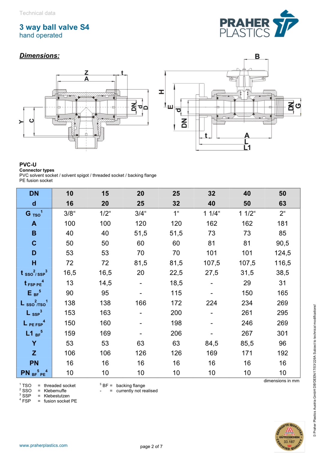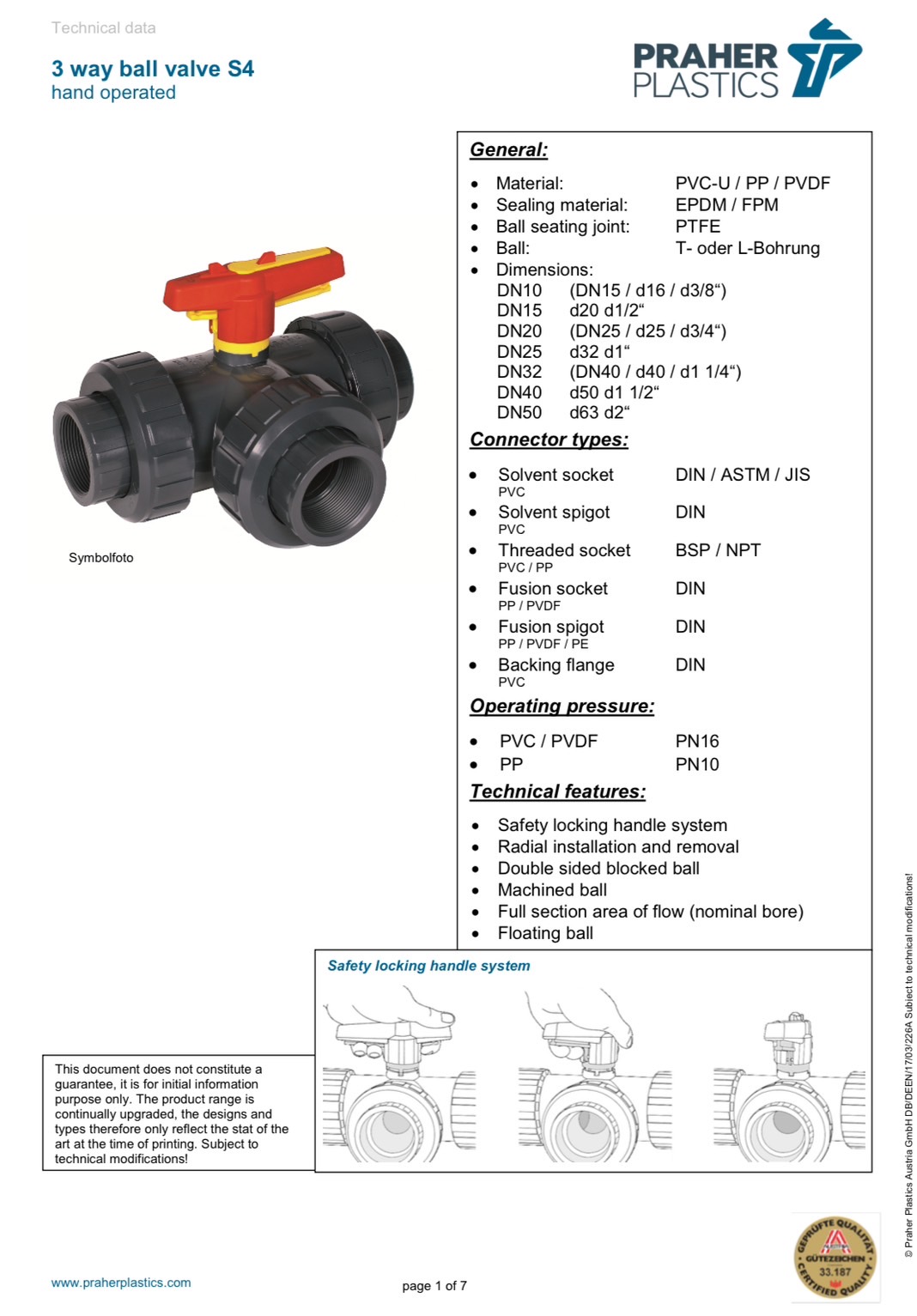 "PRAHER" 3-way Ball Valve S4 PVC-U