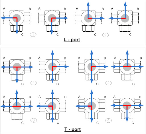ทิศทางการไหลของ 3-WAYS BALL VALVE