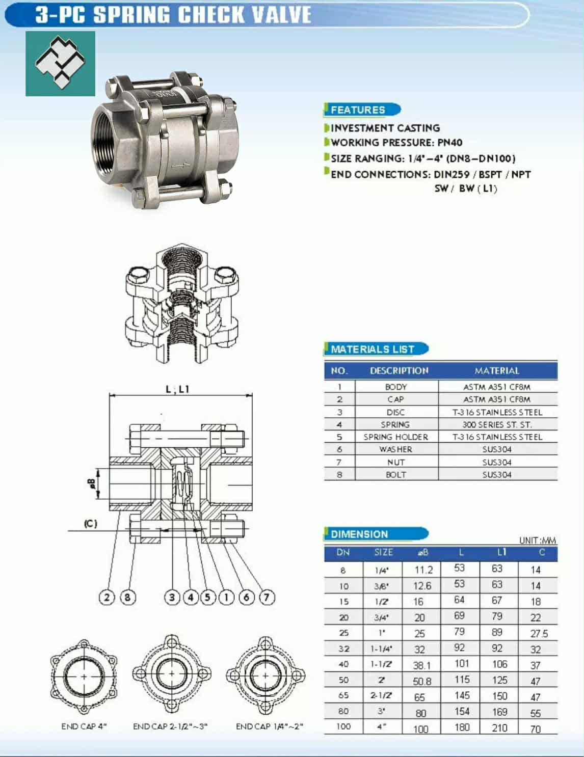 "AVA" 3-PCS SPRING LOAD CHECK VALVE, PN40