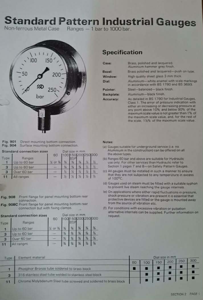 "SSD" PRESSURE GAUGE DS250 10"