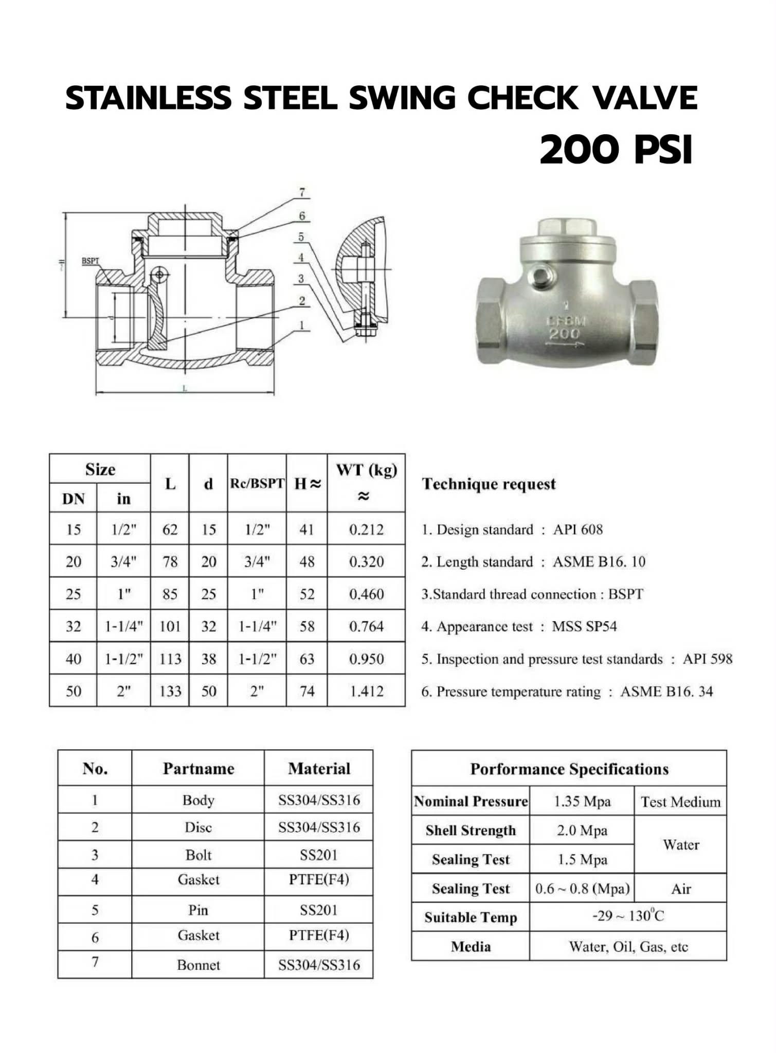 "AVA-SFC" SWING CHECK VALVE , CF8