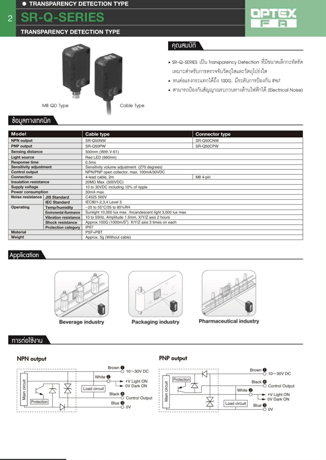 OPTEX Photoelectric Sensors code SR-Q-SERIES