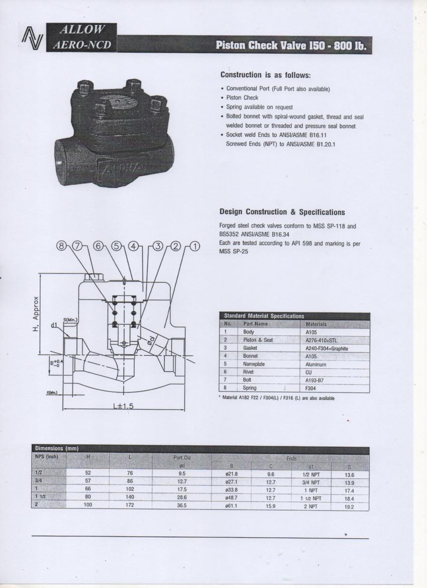 ALPHA FORGED STEEL PISTON CHECK VALVE #800