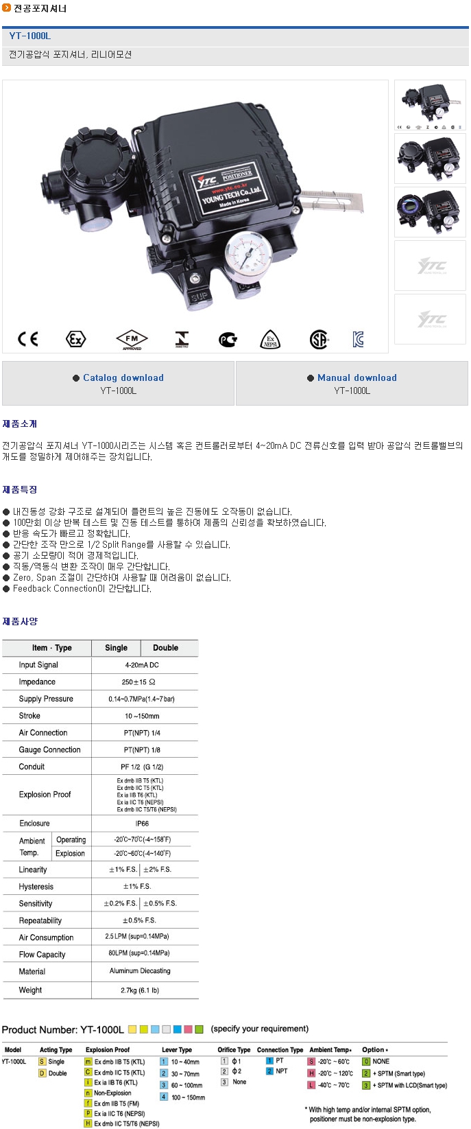 " YTC " ELECTRO-PNUMATIC POSITIONER YT-1000L