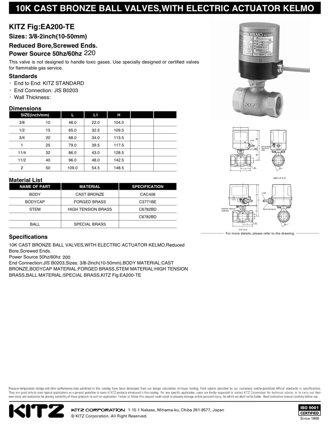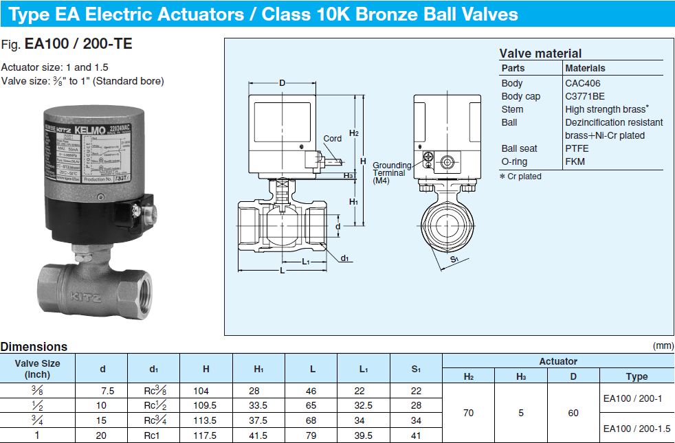 " KITZ KELMO " BRASS BALL VALVE WITCH ELETRIC ACTUATOR
