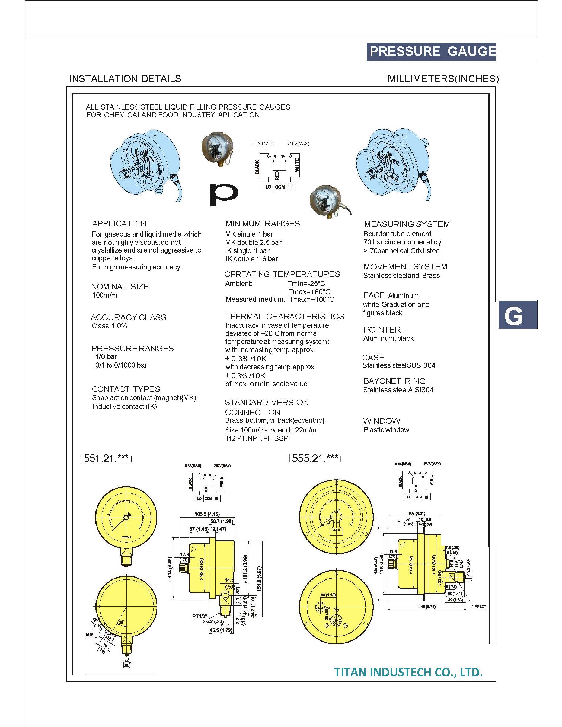 PRESSURE GAUGE WITH ELECTRIC CONTACT(0-400 kg/cm2,BAR)