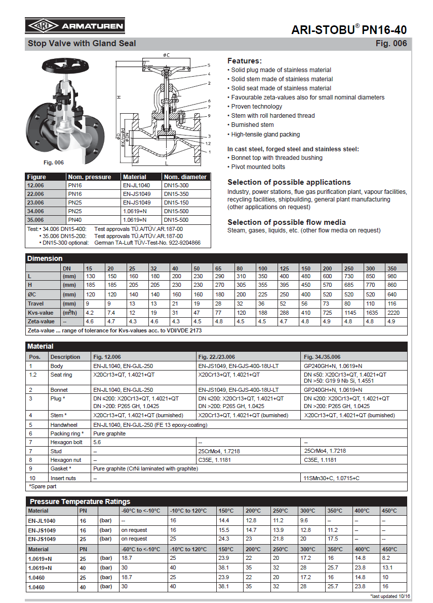 "ARI" GLOBE VALVE WITH GLAND PACKING , STOBU