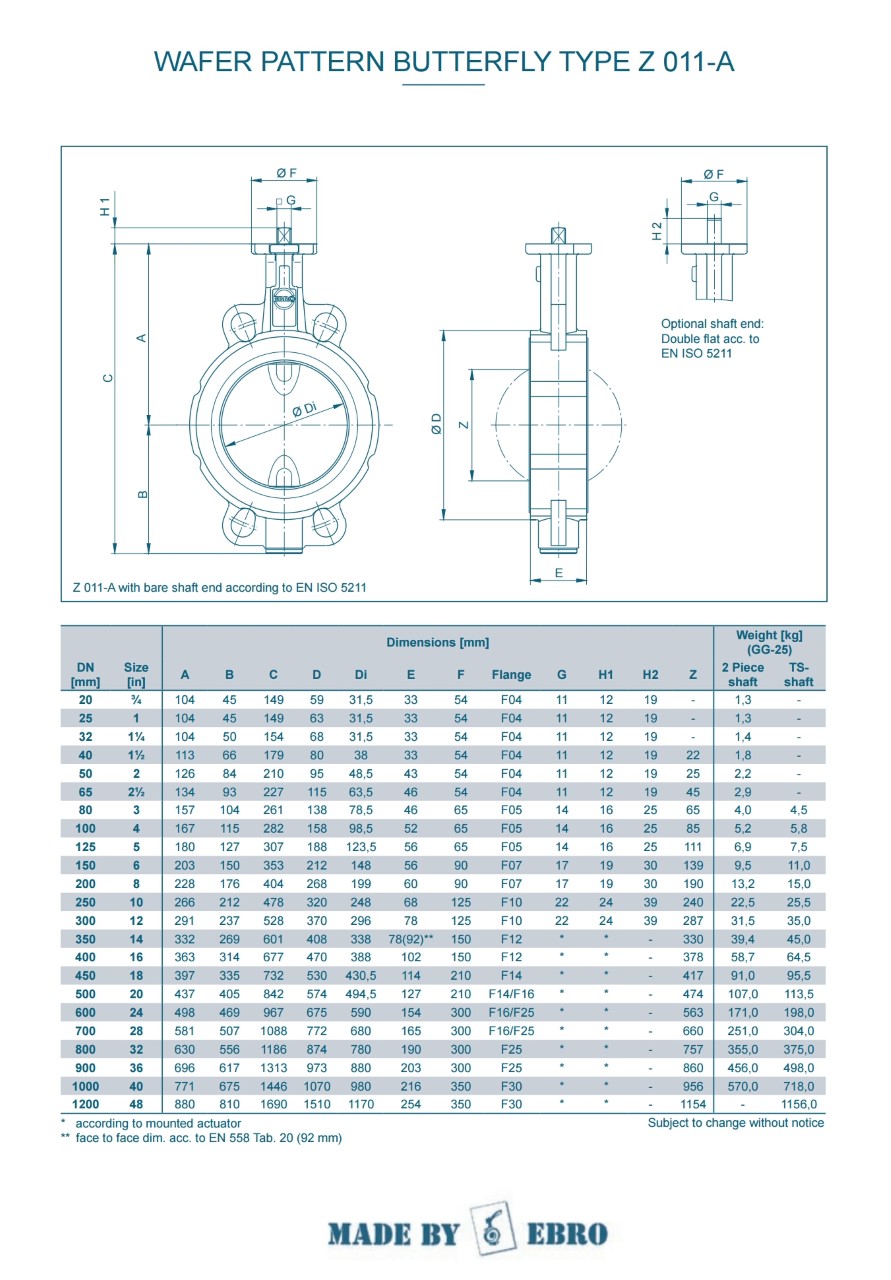 "EBRO-SIRCA" BUTTERFLY VALVE C/W PNEUMATIC ACTUATOR