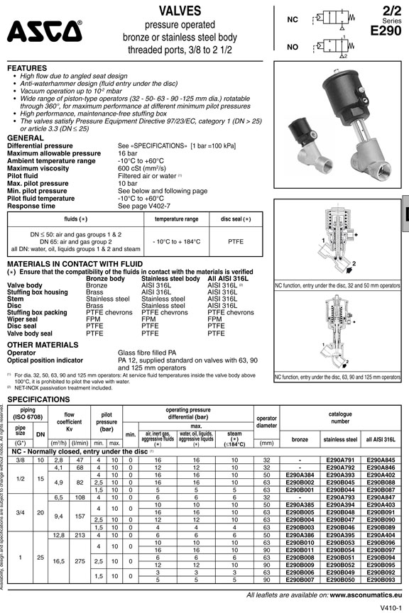 2/2 PISTON VALVE BRONZE OR STAINLESS STEEL BODY