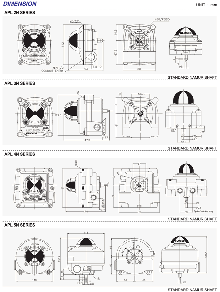 - Multiple options - up to four switches, various mechanical, proximity and reed type sensors, feedback potentiometers and 4-20mA transmitters; only enclosure capable of housing (2) DPDT Switches