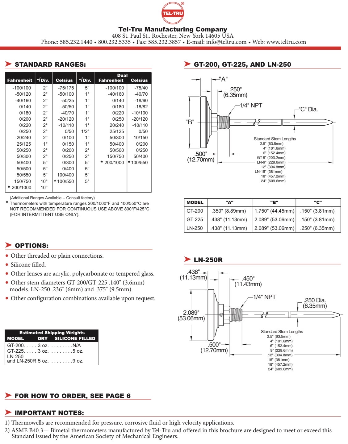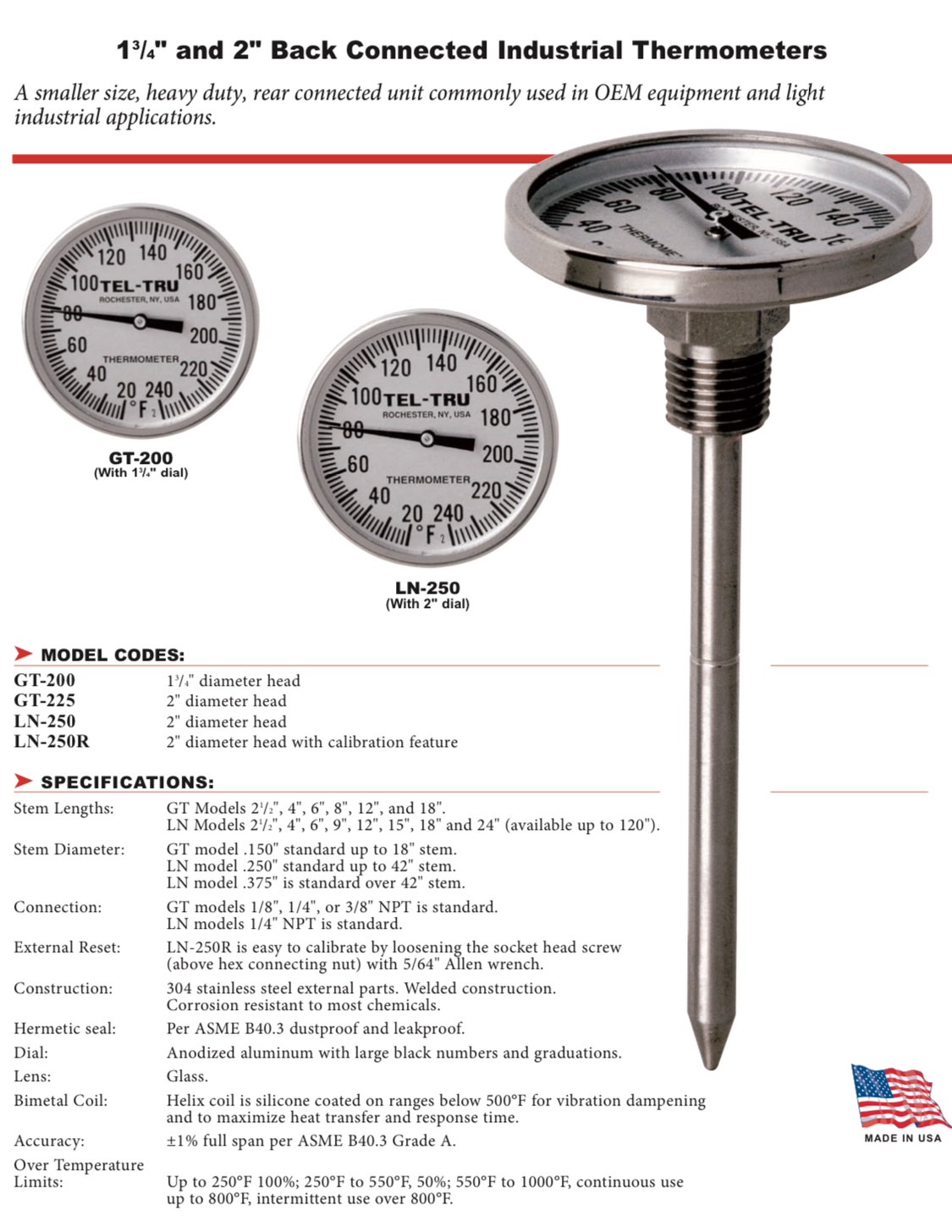 "TEL-TRU" THERMOMETER GT-200 / LN-250 (BACK CONNECTED)