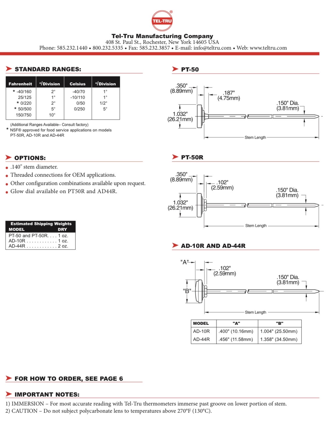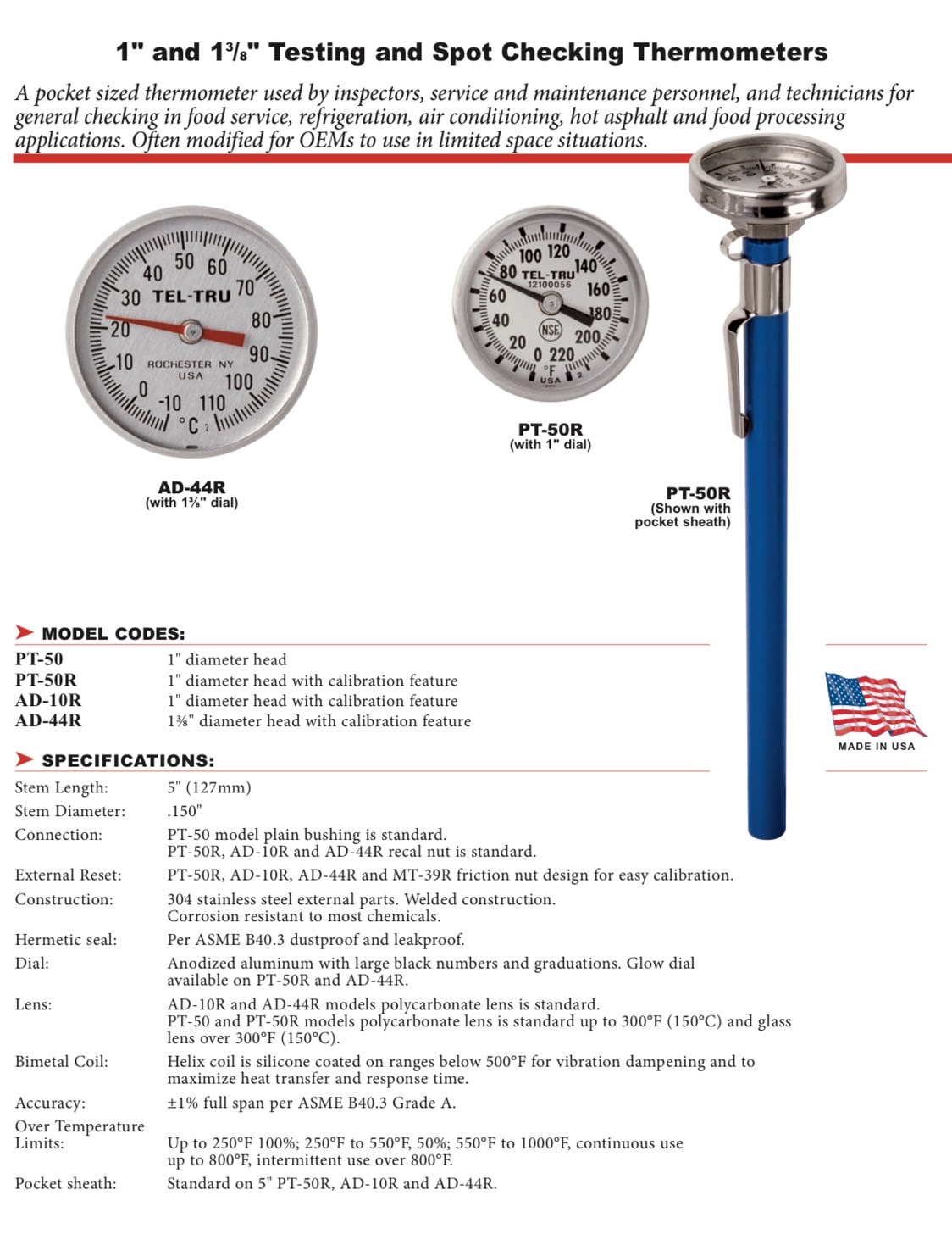 "TEL-TRU" THERMOMETER PT-50R Pocket Test