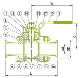 3-PCS. SANITARY C-CLAMP END BALL VALVE