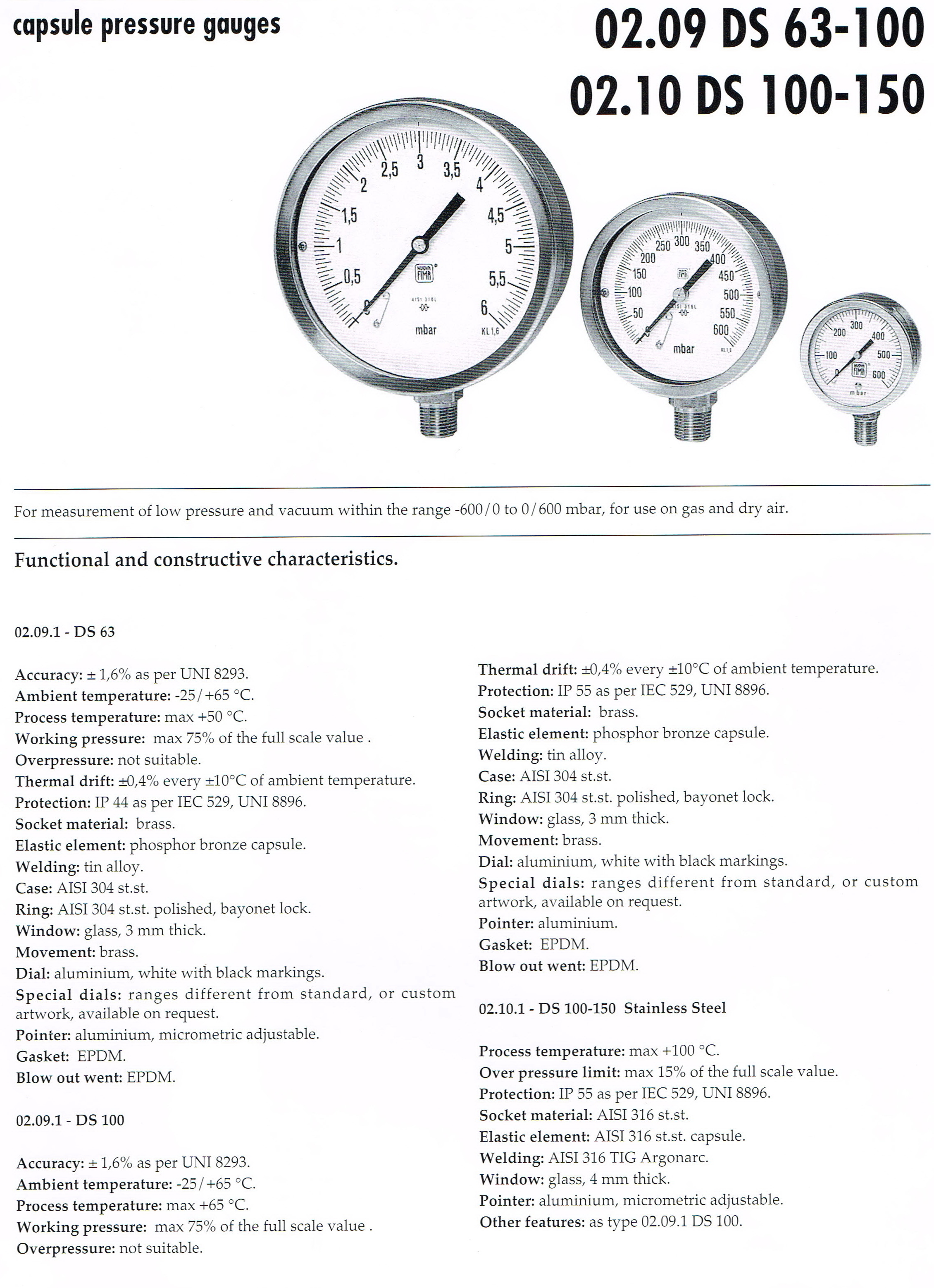 NUOVA FIMA Capsule pressure gauges DS 63/100