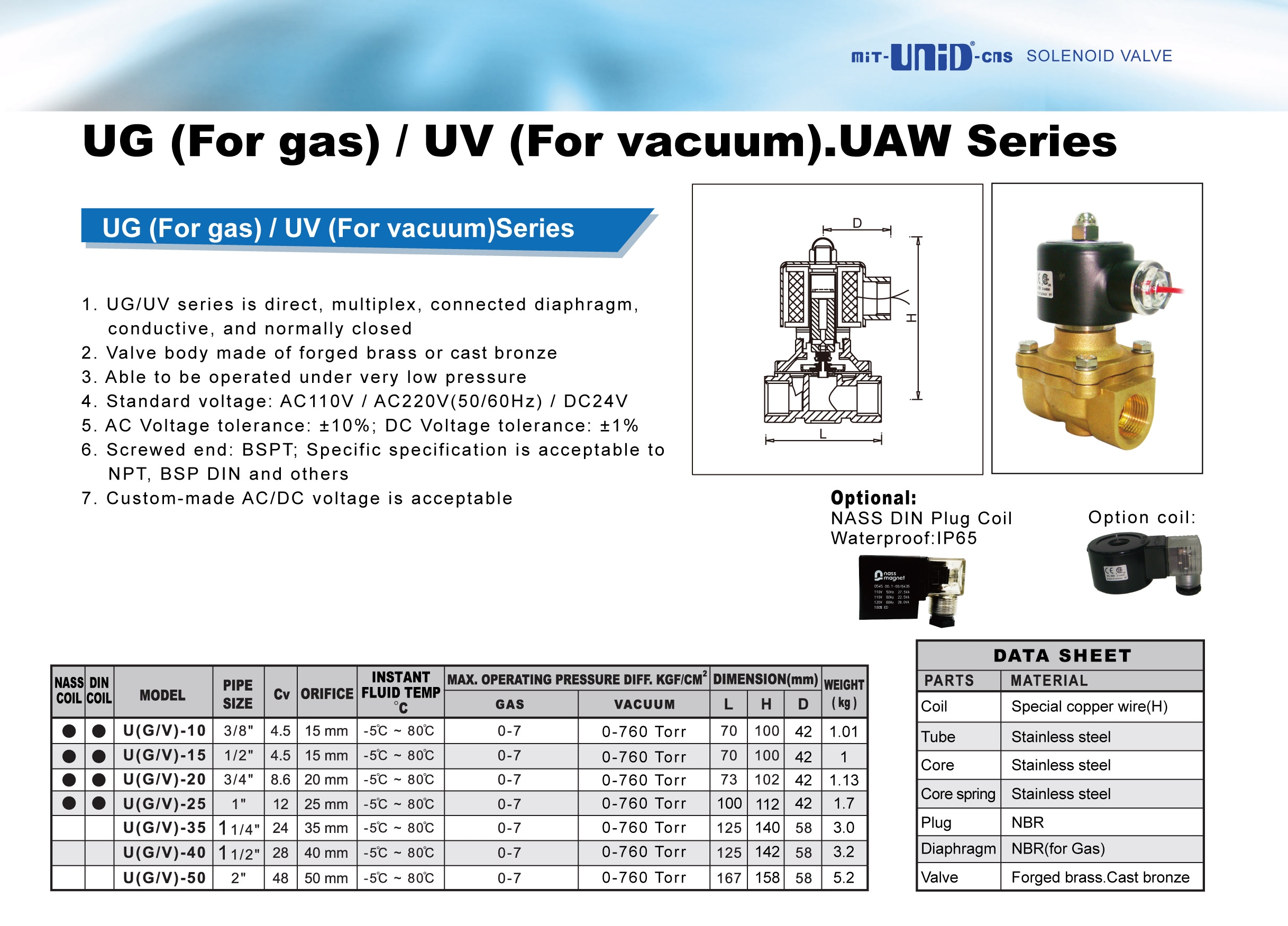 2 WAY SOLENOID VALVE FOR VACUUM, GAS