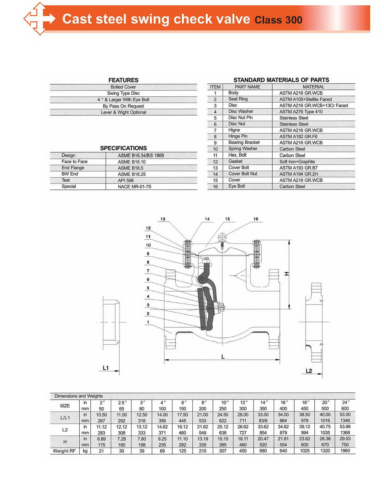 CAST STEEL SWING CHECK VALVE CLASS 300