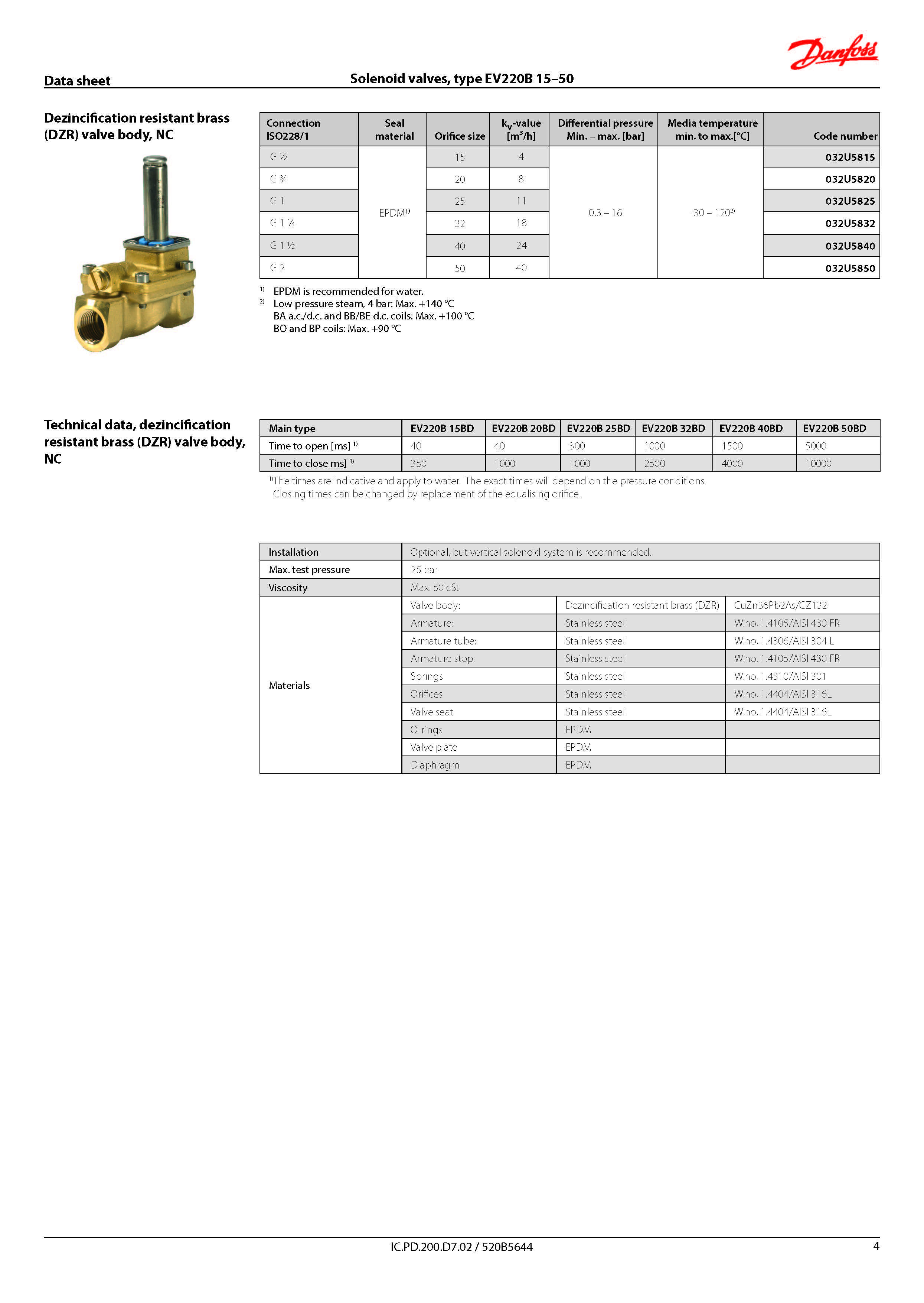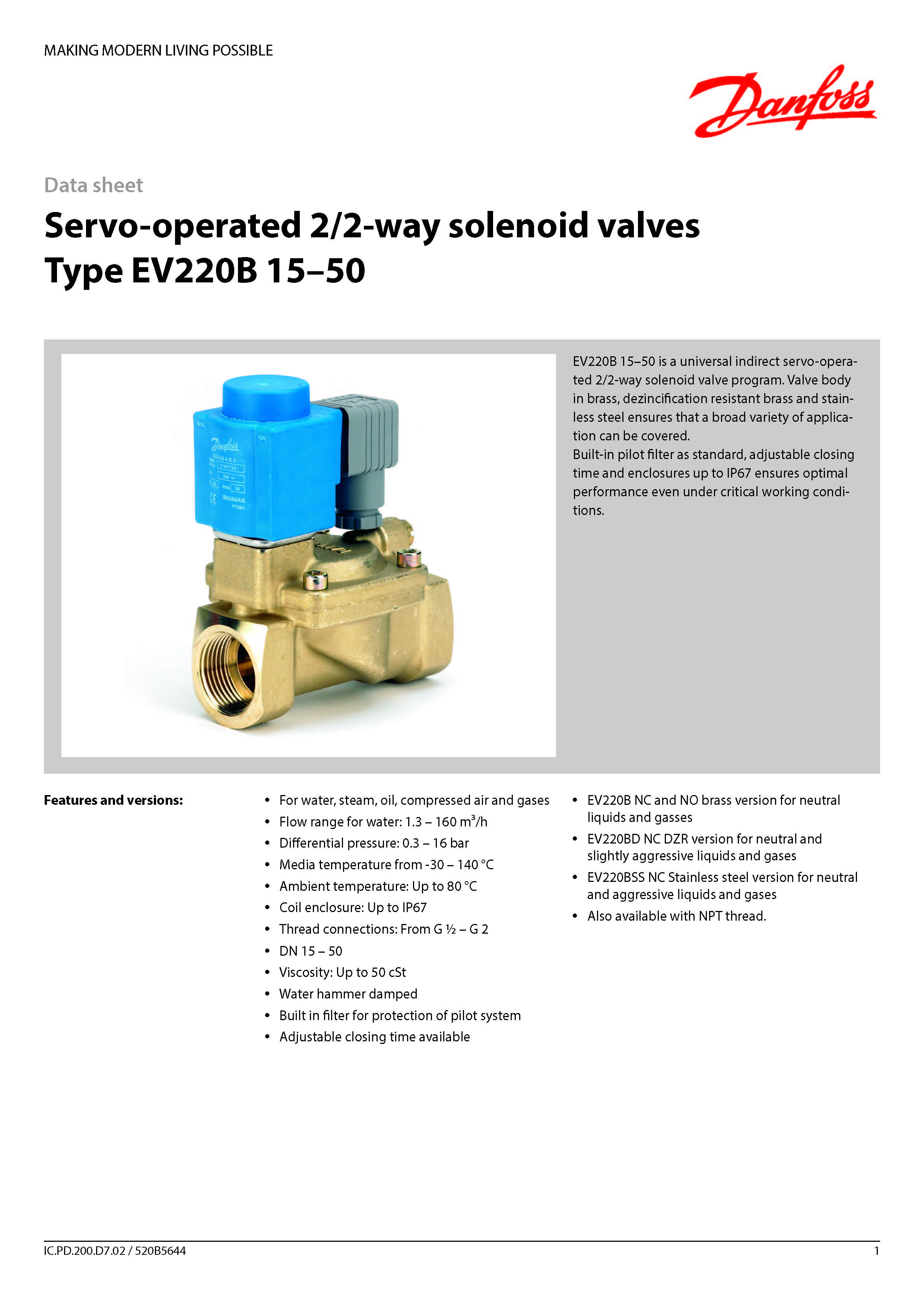 DANFOSS 2/2-WAY SOLENOID VALVE EV220B (BRASS)
