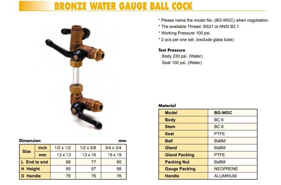 BRONZE WATER GAUGE BALL COCK VALVE(ก๊อกบอลวาล์วหลอดแก้ว)