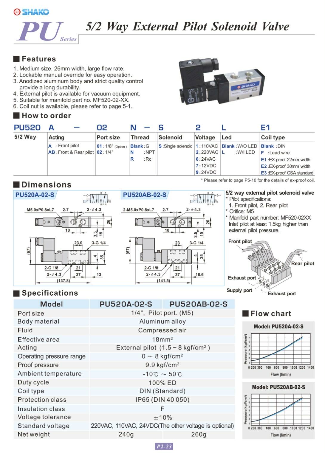 "SHAKO" 5/2 EXTERNAL PILOT SOLENOID VALVE PU520
