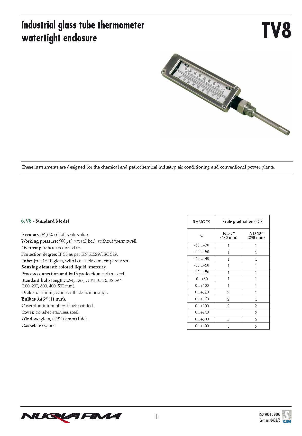 INDUSTRIAL GLASS TUBE THERMOMETER WATERTIGHT ENCLOSURE