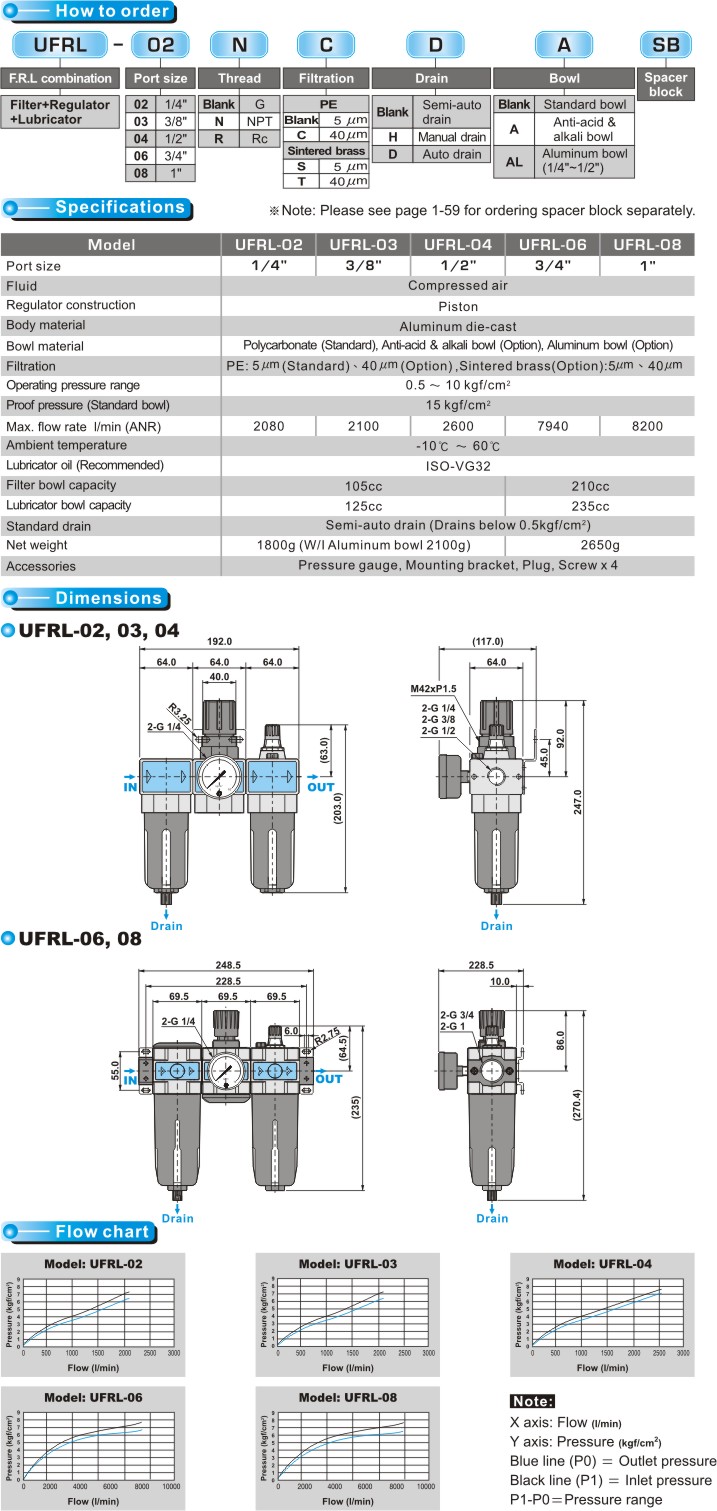 SHAKO UFRL Filter + Regulator + Lubricator (3 units style)