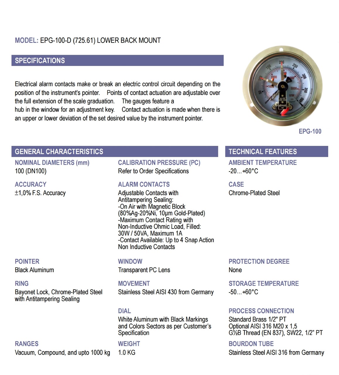 PRESSURE GAUGE WITH ELECTRIC CONTACT(0-250 kg/cm2/PSI) BOTTOM