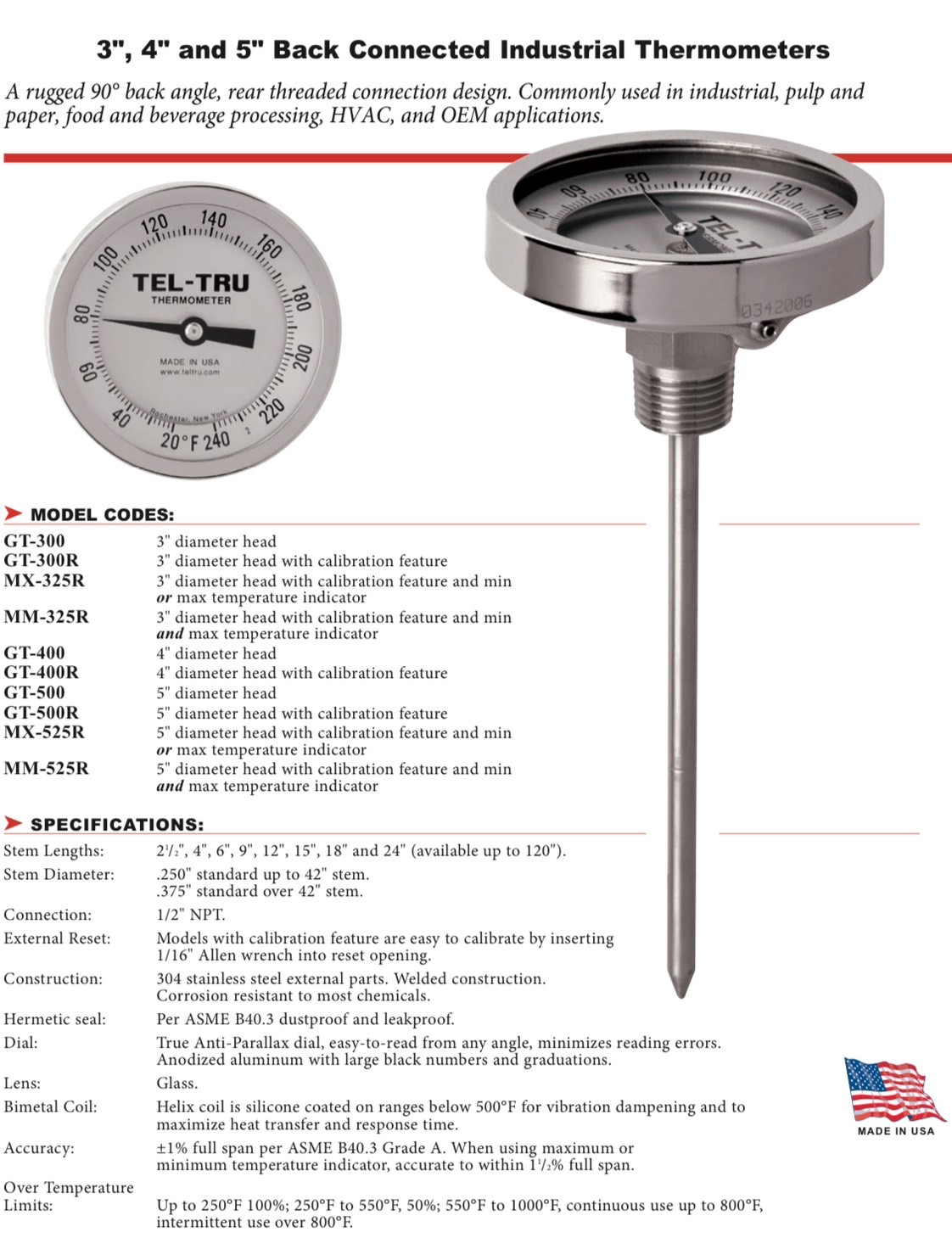 "TEL-TRU" THERMOMETER (BACK CONNECTED)