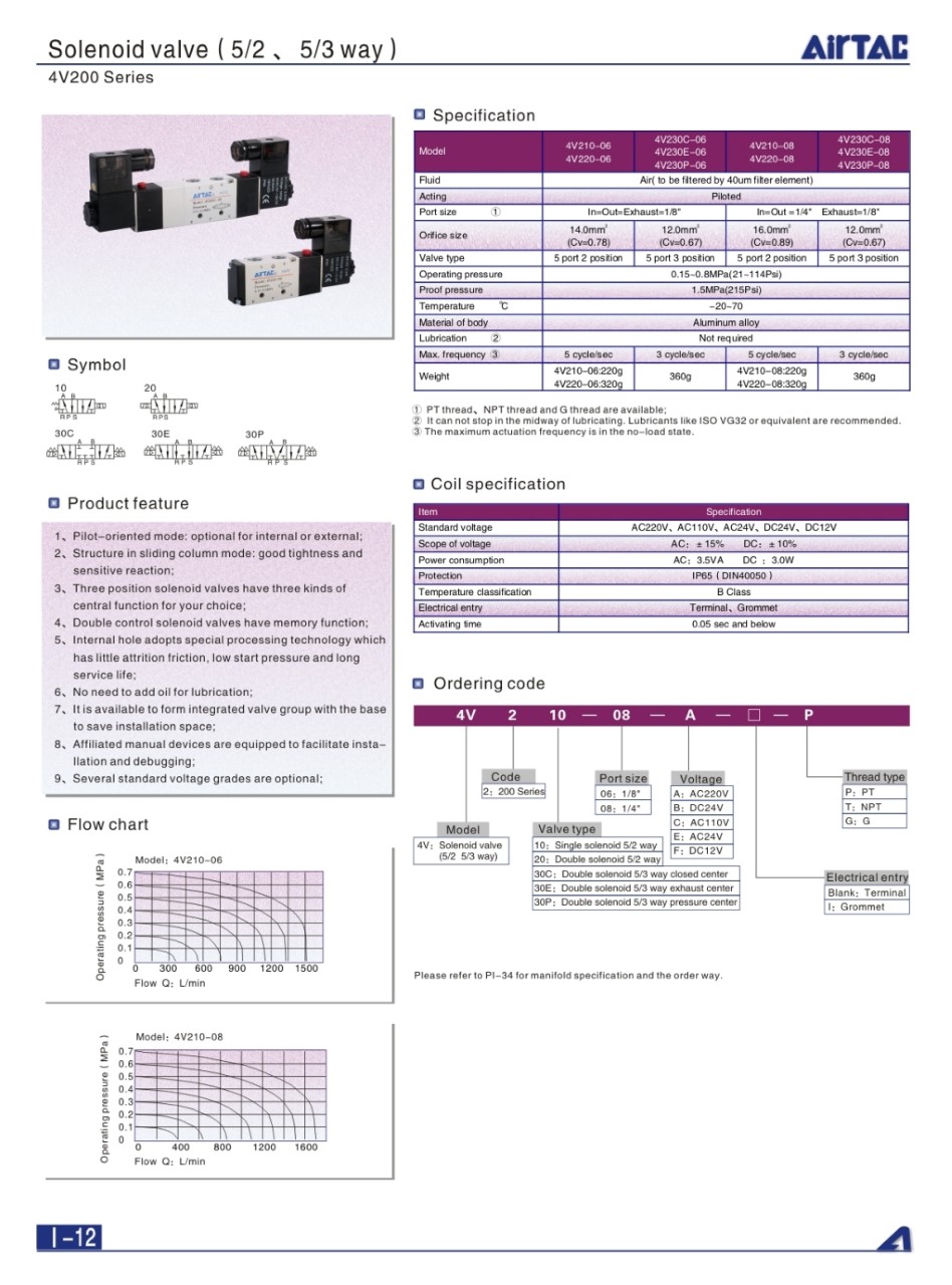 AIRTAC 5/2 Solenoid Valve 4V210-08