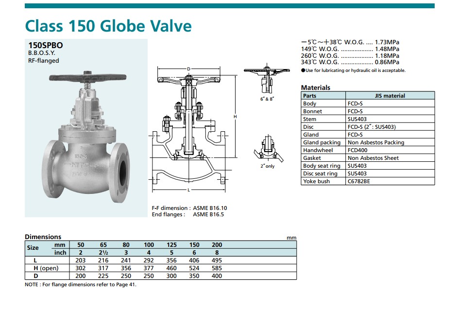 DUCTILE IRON GLOBE VALVE 150SPBO