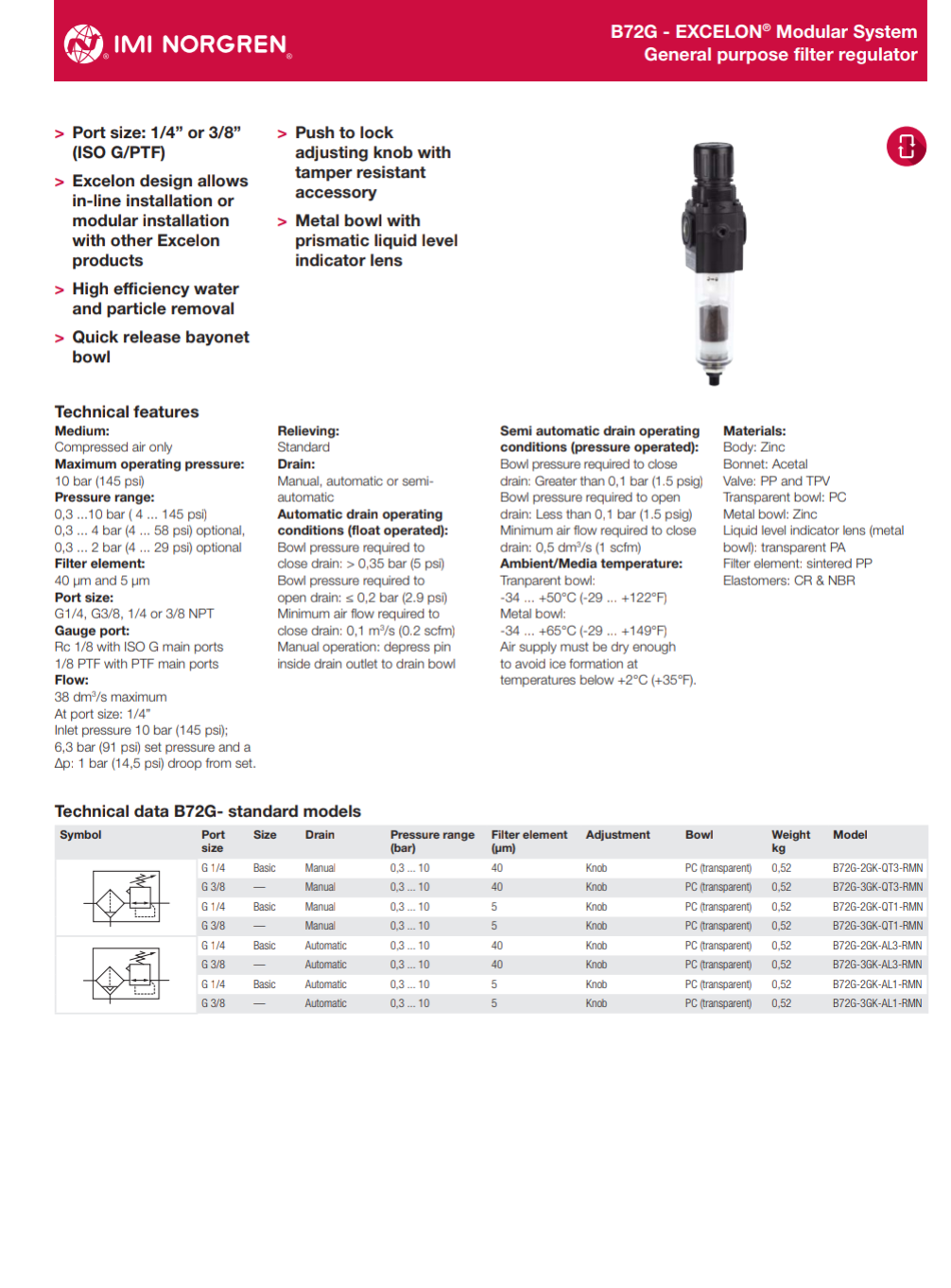 NORGREN FILTER REGULATOR B72G-EXCELON