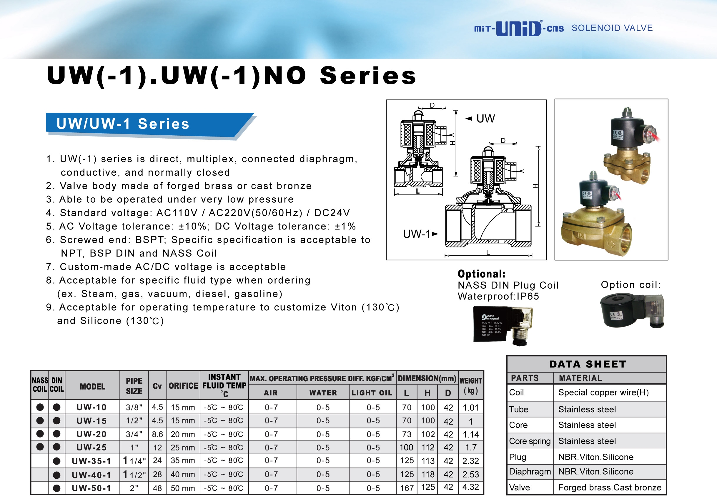 UNI-D 2-WAY SOLENOID VALVE FOR WATER/AIR MODEL UW