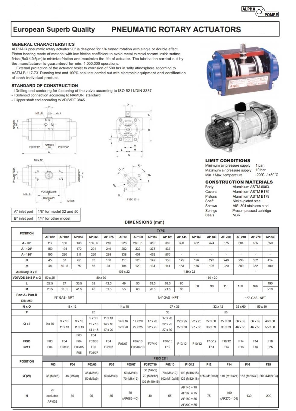 Alpha Pompe PNEUMATIC ACTUATOR
