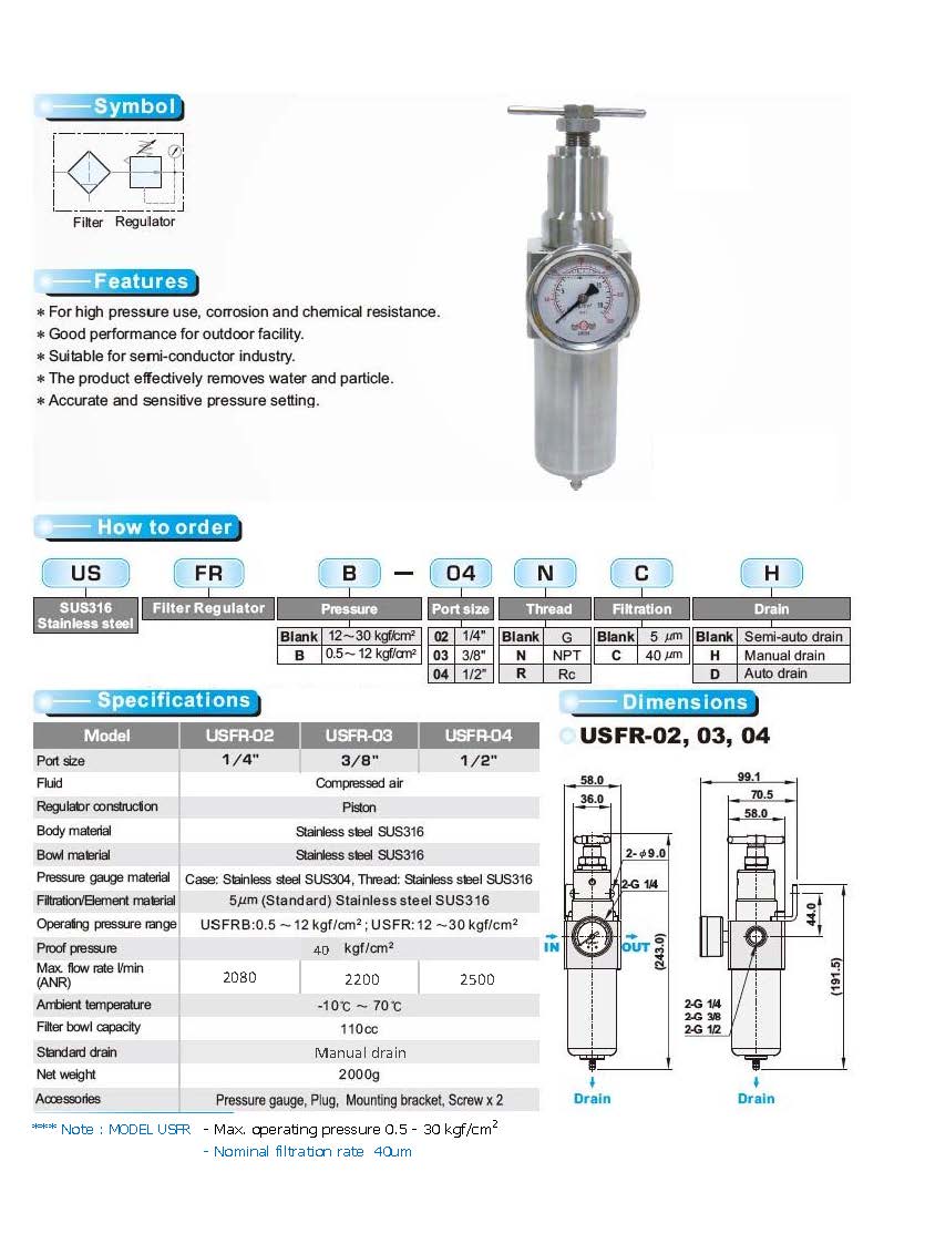 SUS316 Filter+Regulator