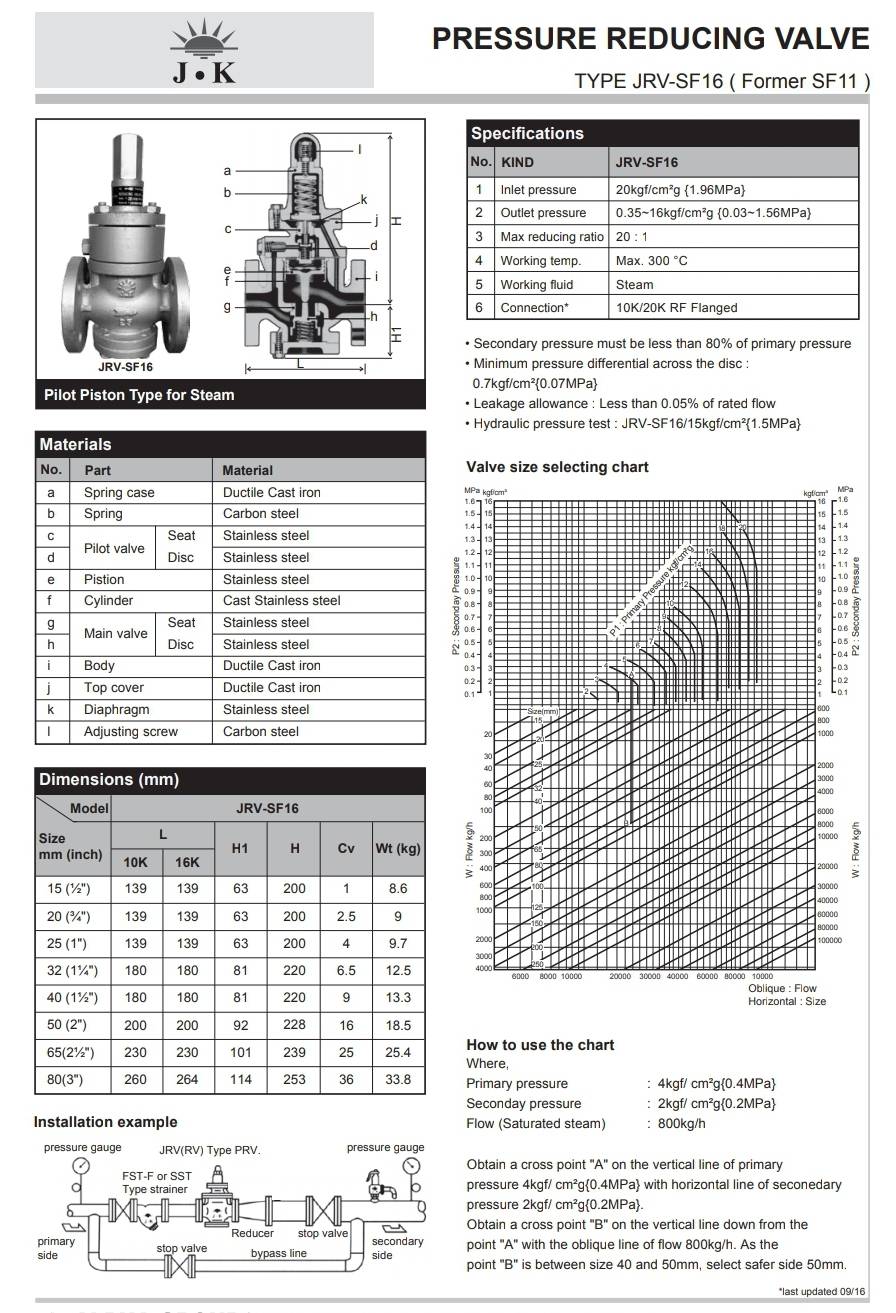 JK PRESSURE REDUCING VALVE JRV-SF16