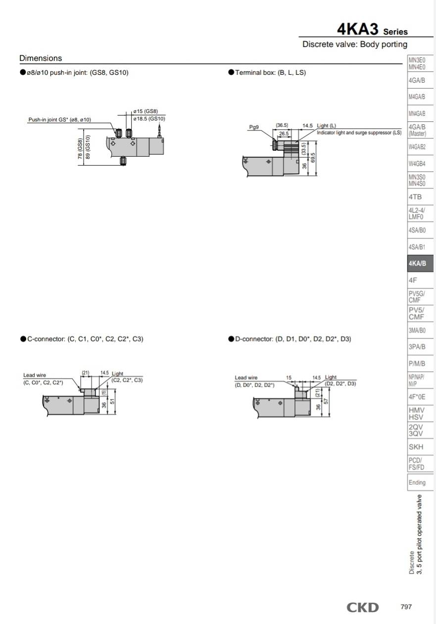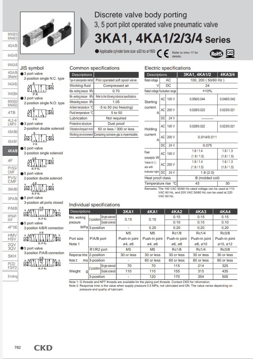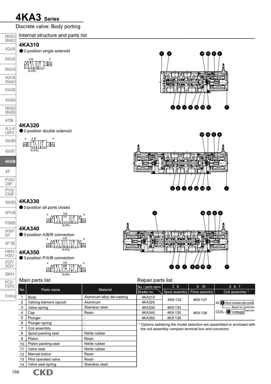 CKD Solenoid Valve 3-position, double coil 4KA330-08-DC24V