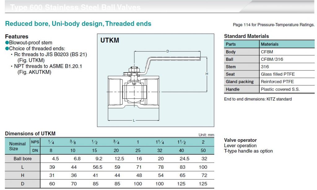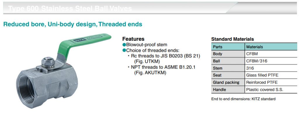 "KITZ" 1-PC BALL VALVE 600 UTKM