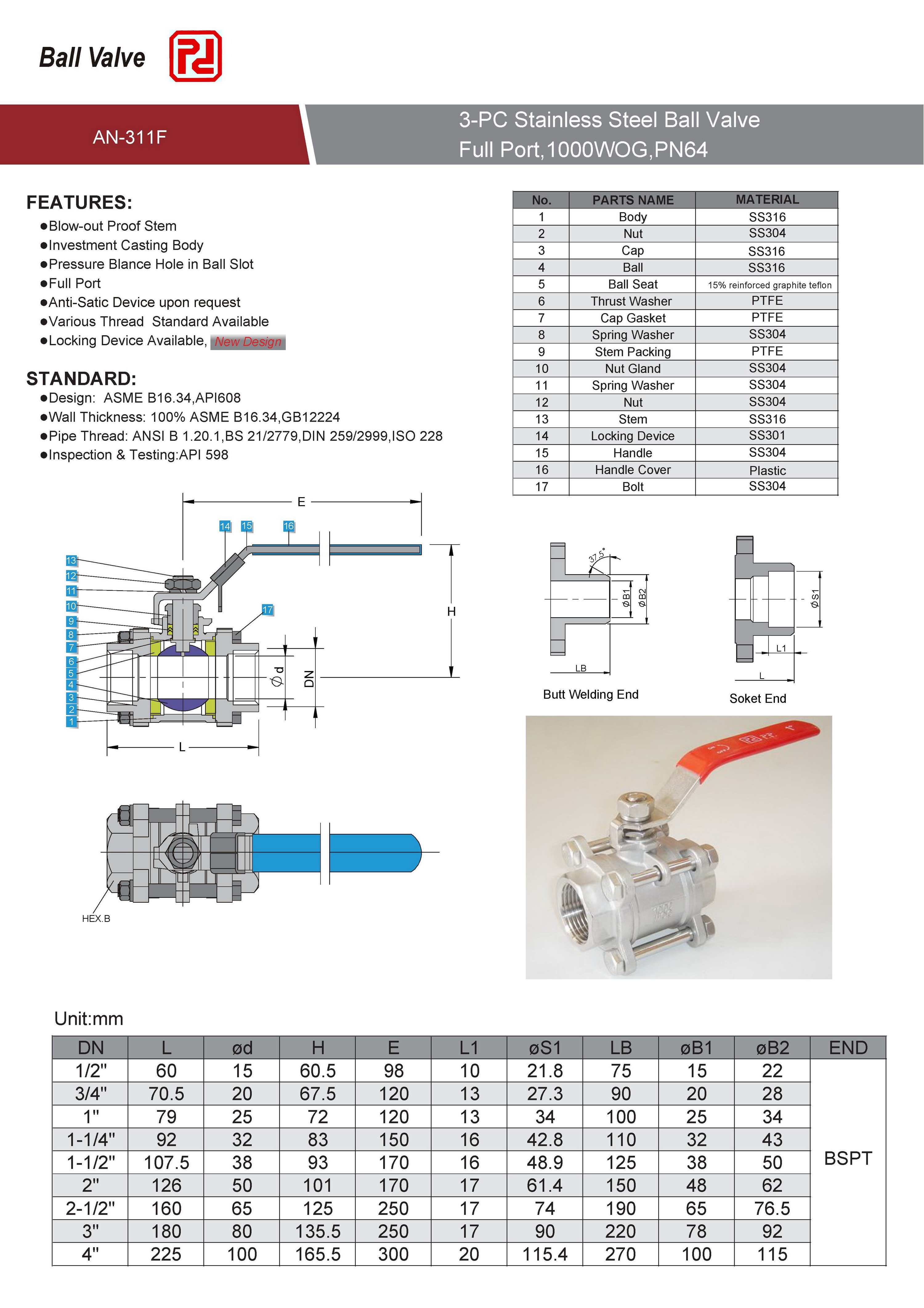 Pd 3-PCS BALL VALVE