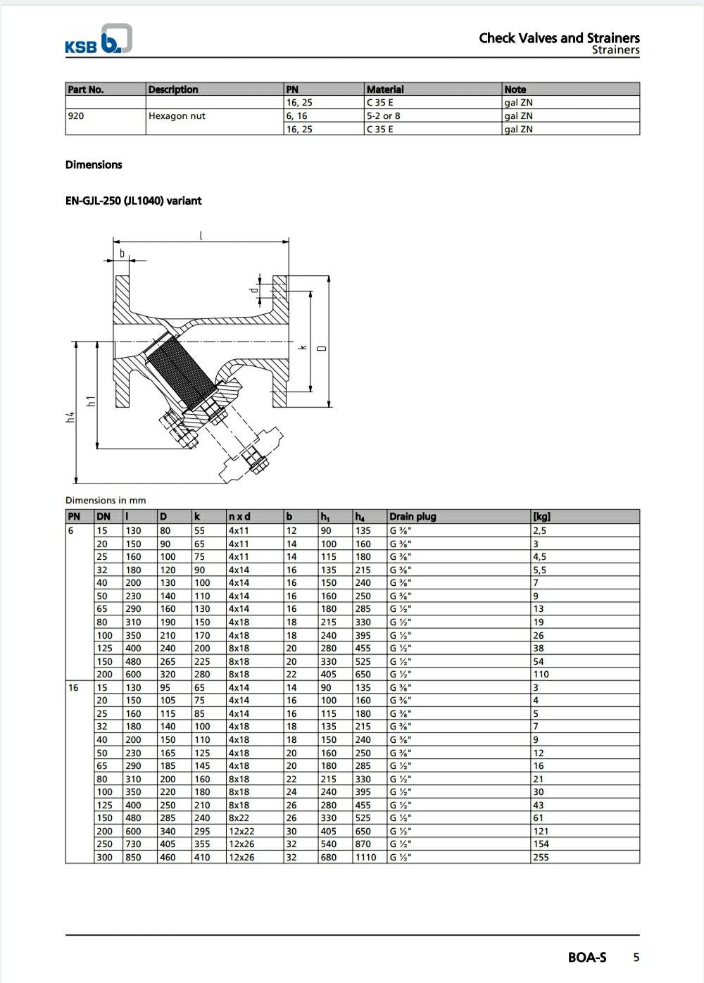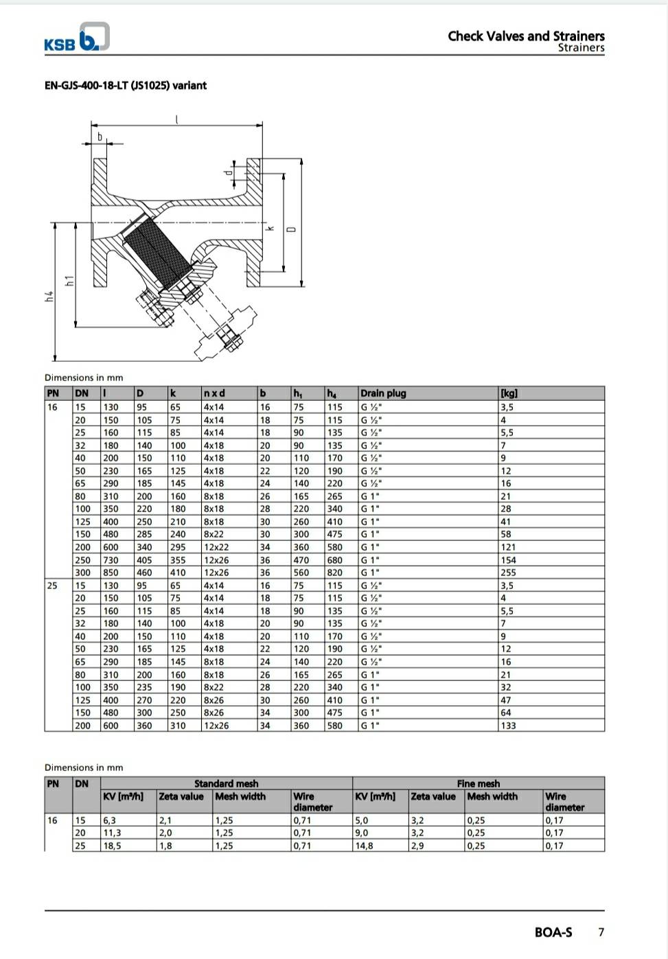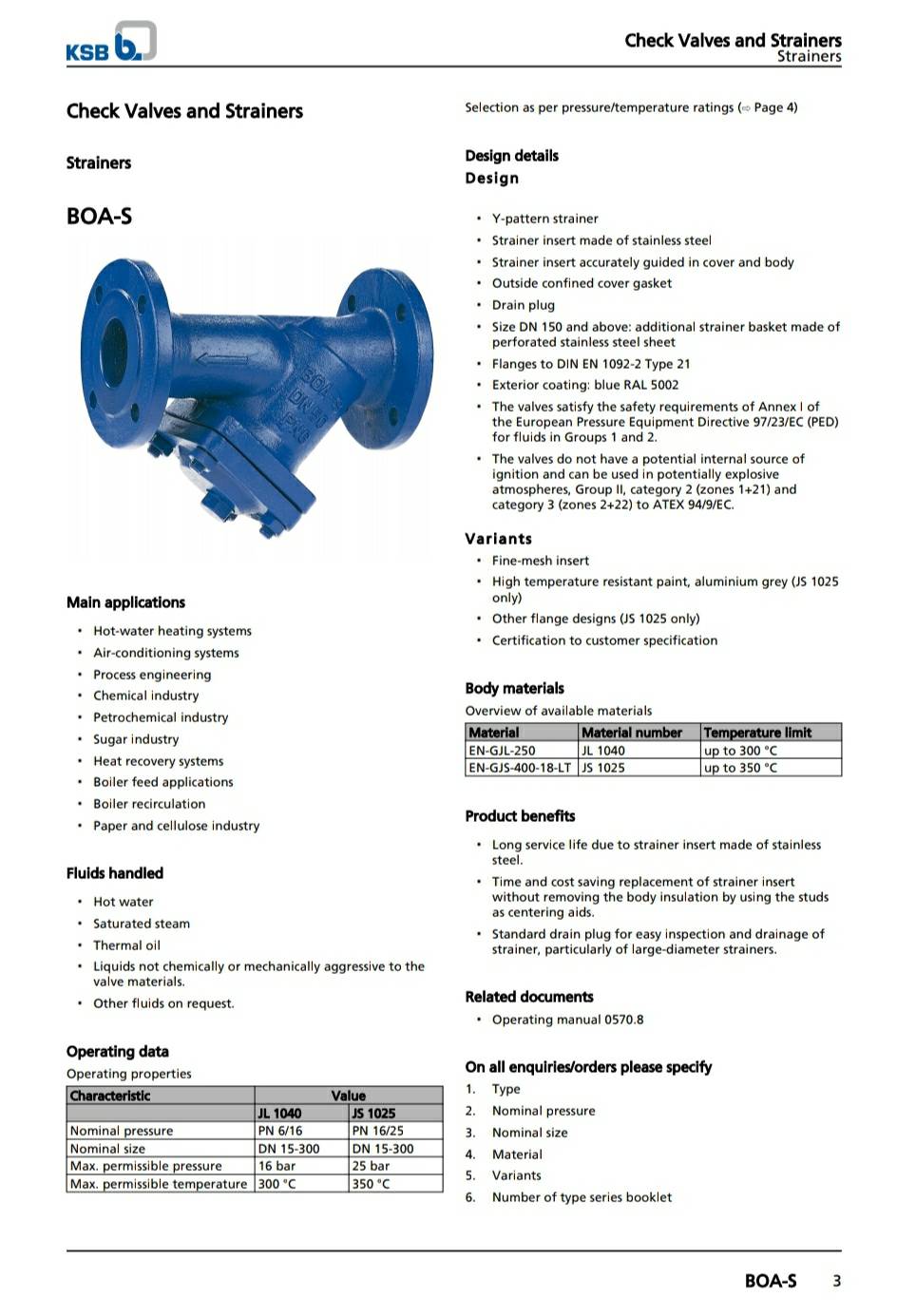 KSB Y-STRAINER PN16 GG-25, BOA-S