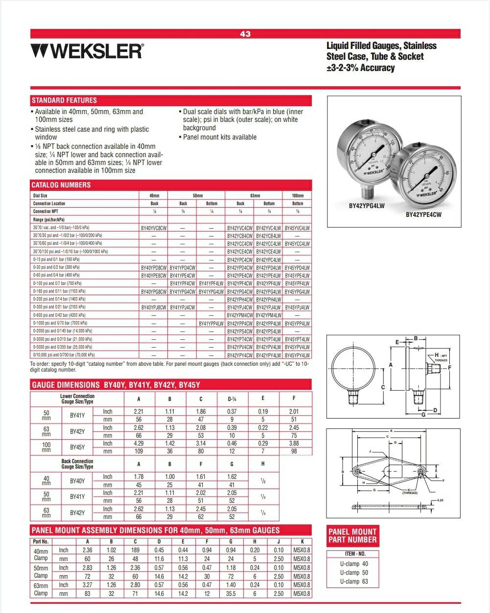 Weksler Stainless Steel Pressure Gauge 63 mm.