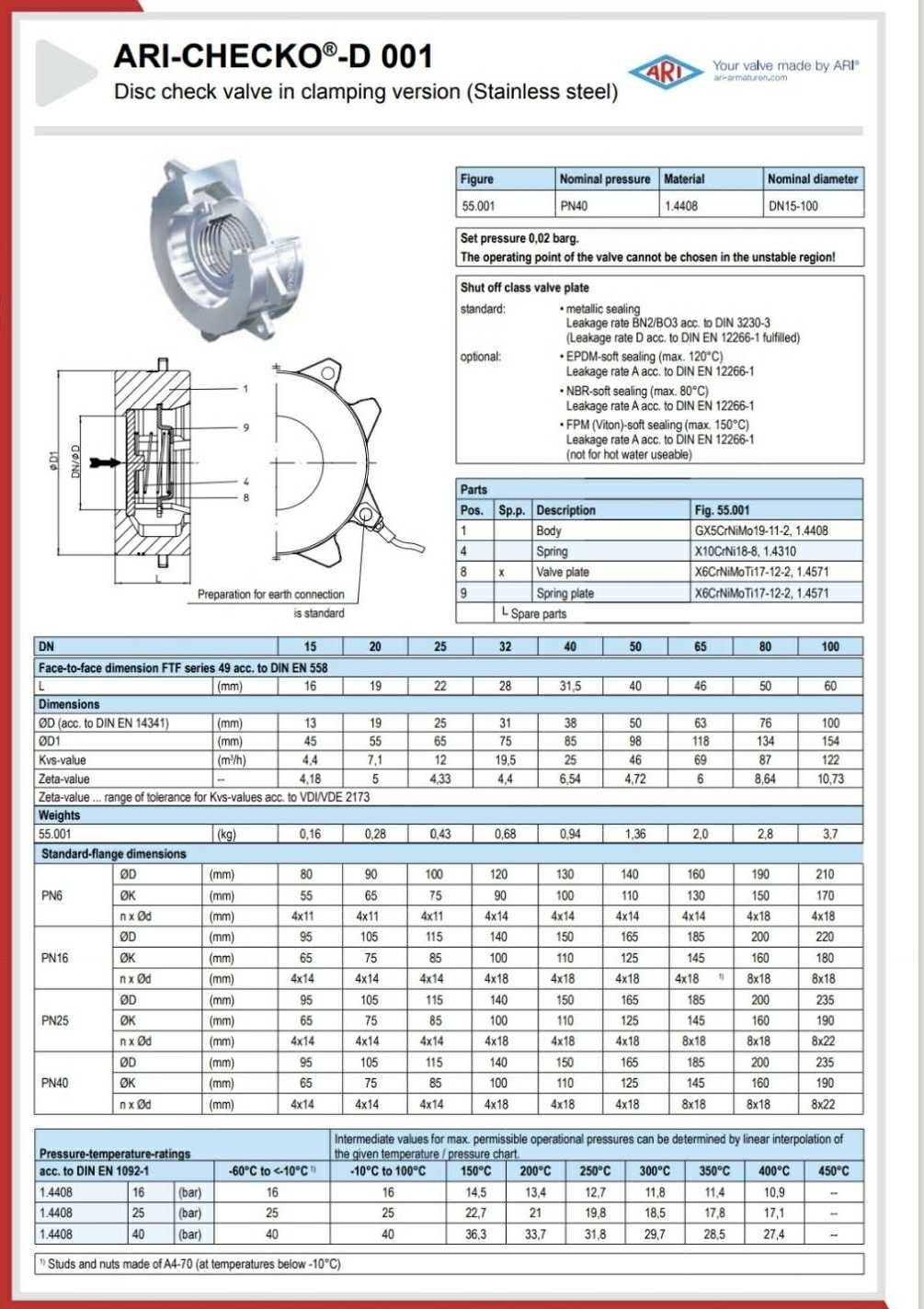 "ARI CHECKO" DISC CHECK VALVE, PN40