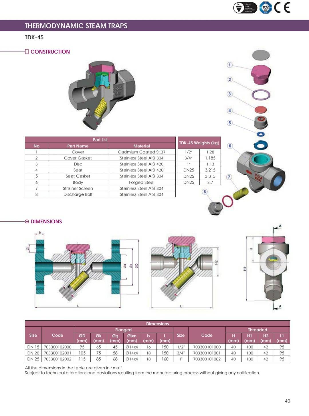 Thermodynamic Steam Trap TDK-45