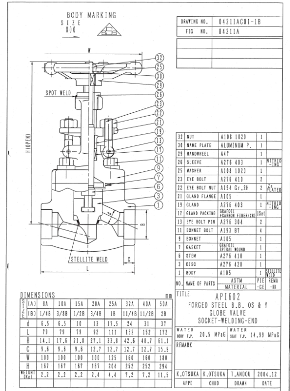 SSS : FORGED STEEL GLOBE VALVE CLASS 800
