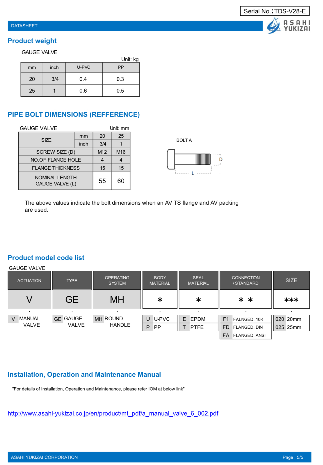 ASAHI AV Gauge Valve