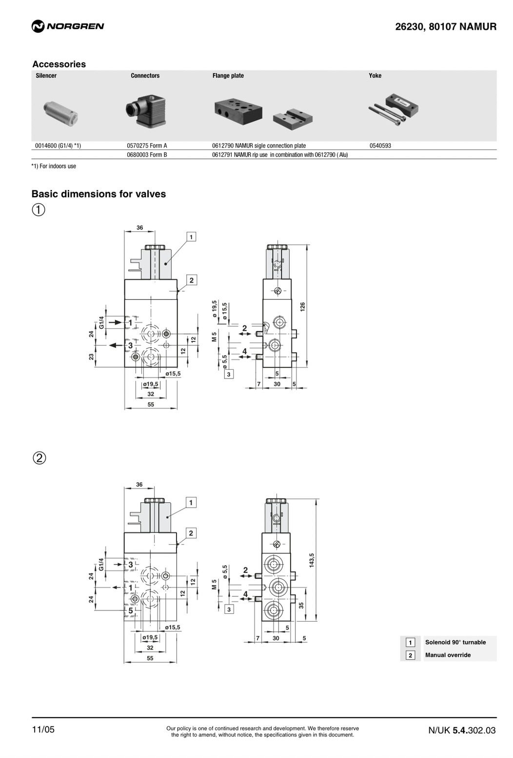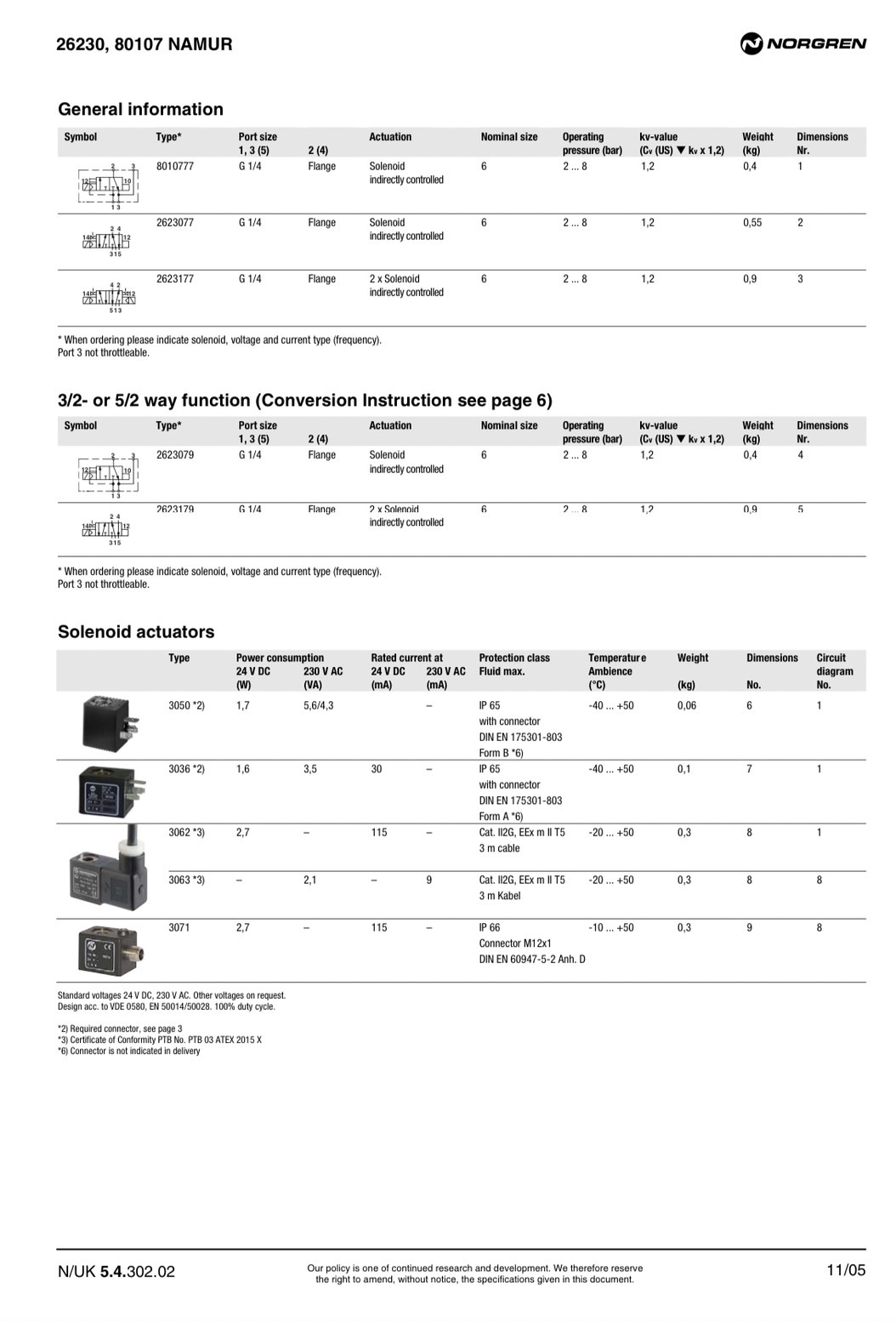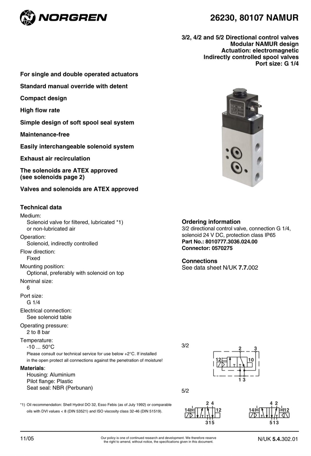 "NORGREN" NAMUR 3/2 , 5/2 SOLENOID VALVE ,973000