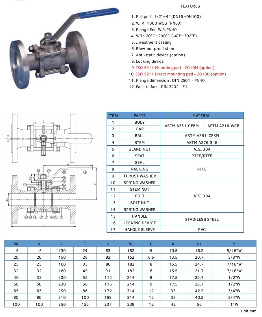 3-PCS BALL VALVE (FLANGE PN16/40)