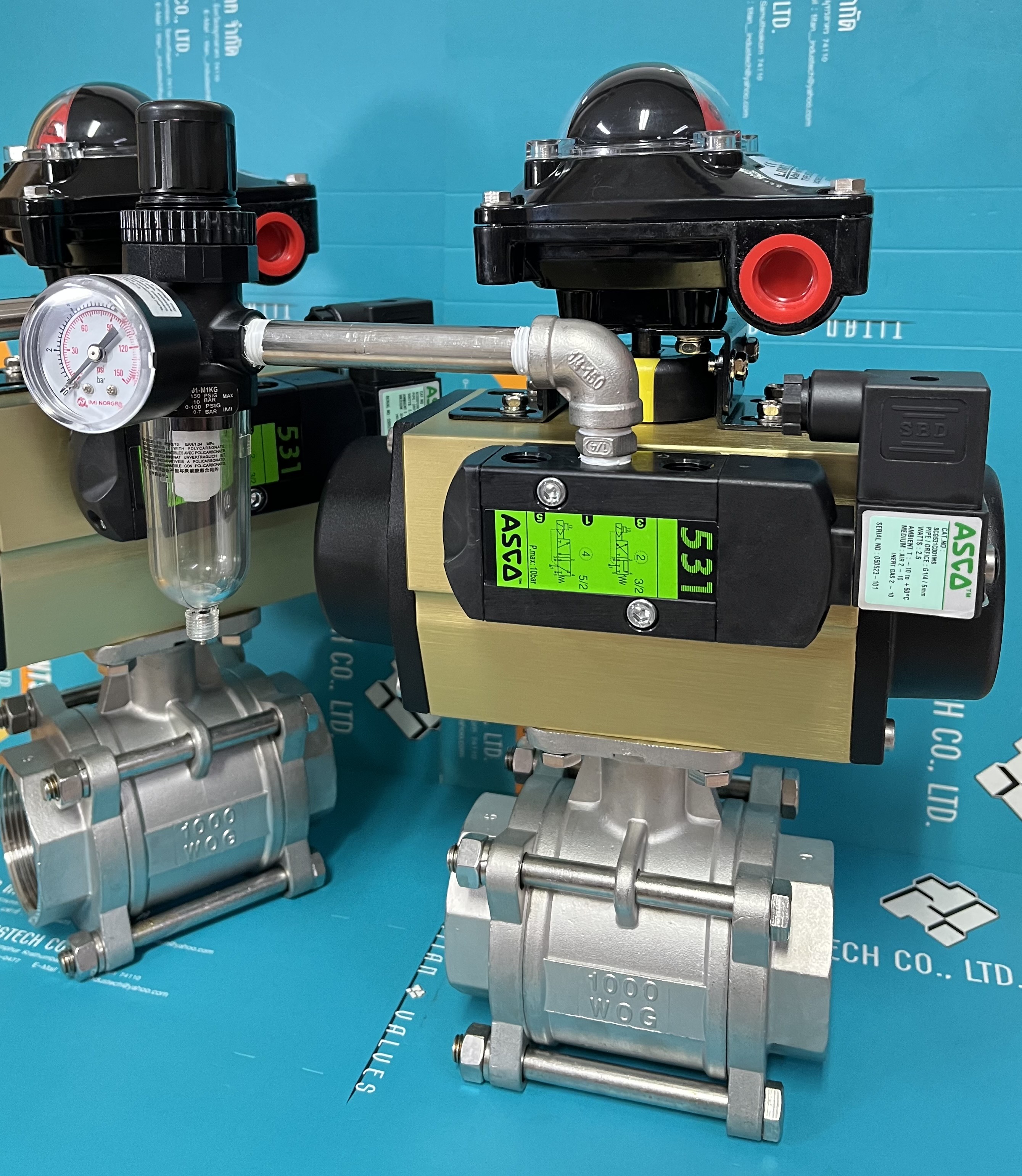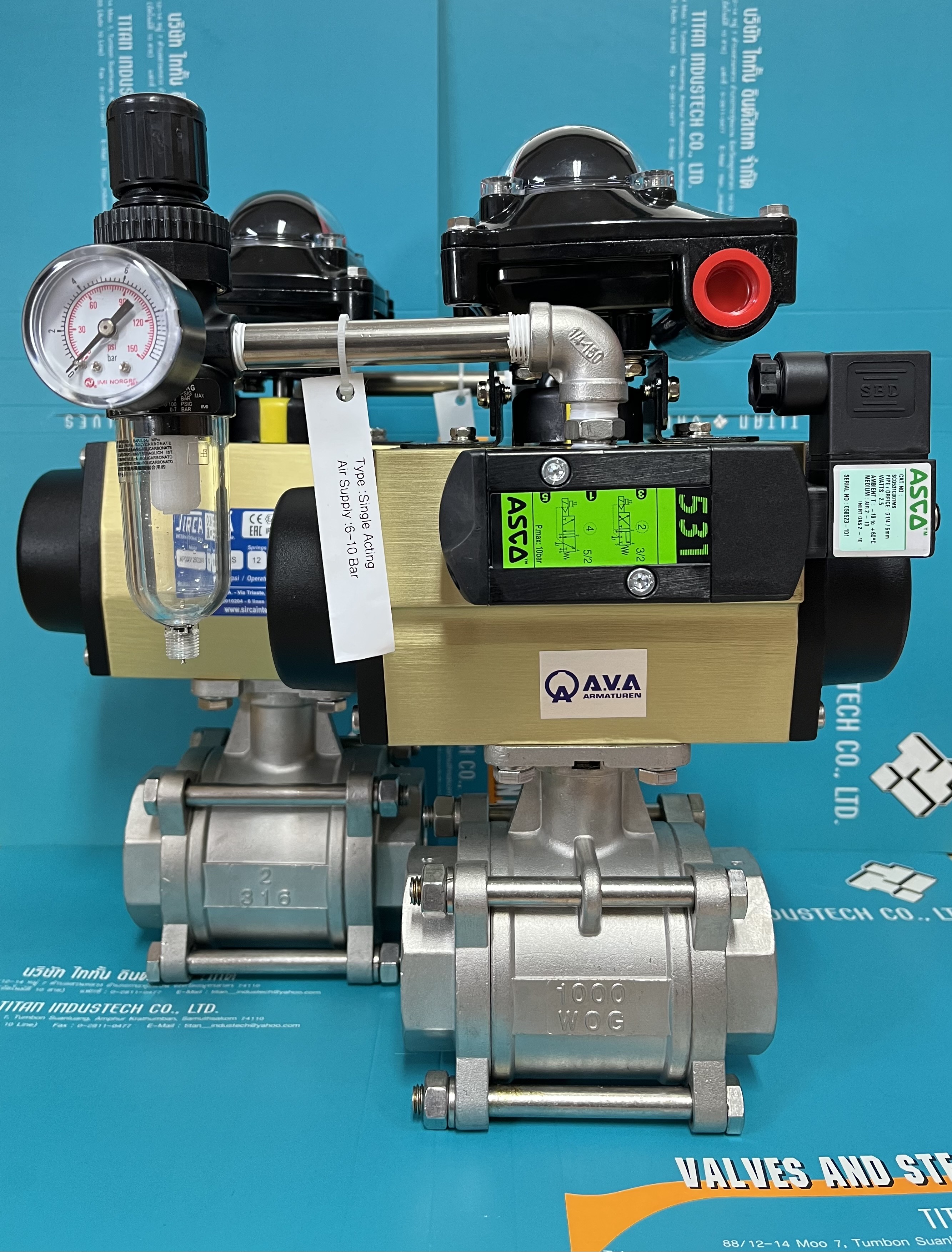 " AVA " 2 Way 3 Pcs Air Control Ball Valve Pneumatic Actuated Ball Valve With Limit Switch Box With Filter-Regulator With Solenoid Valve Namur (3/2,5/2) Power 24 VDC